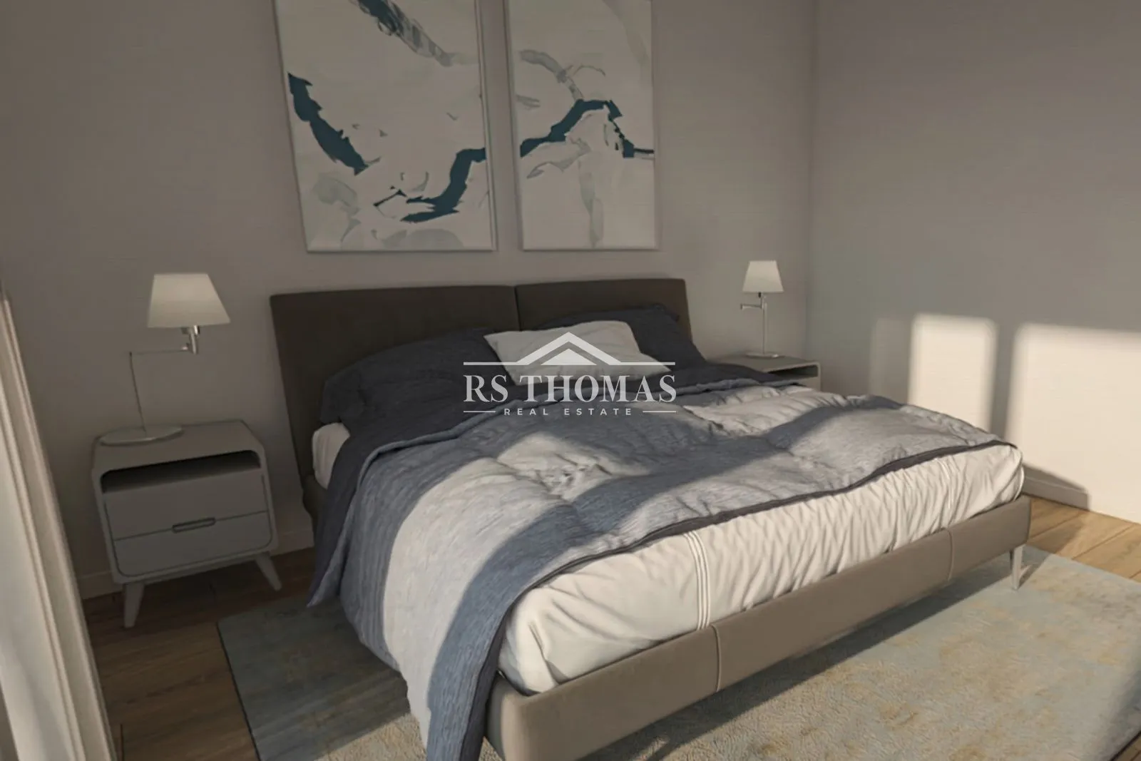 Suelo: Parqué laminado en salones y dormitorios, con gres porcelánico en baños, garantizando calidez y durabilidad.