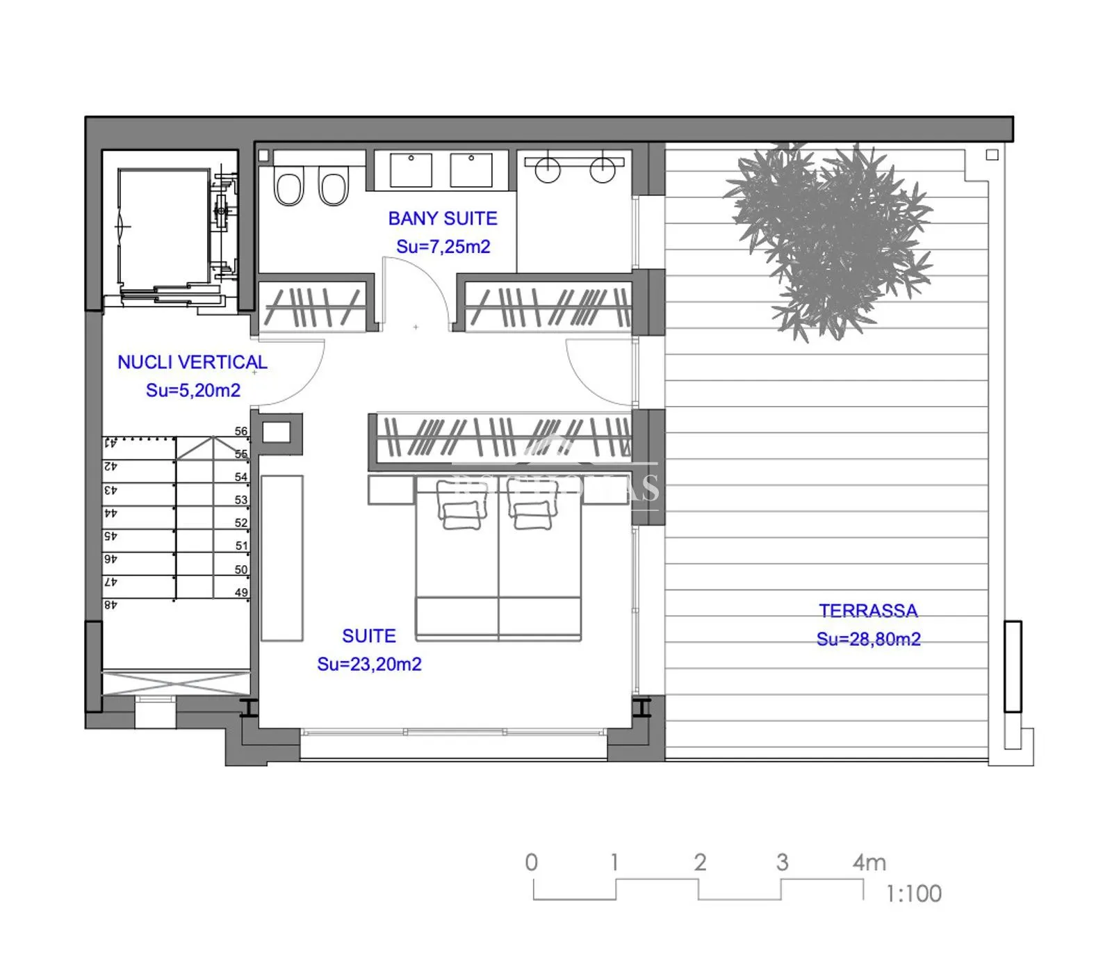 En el interior, el chalet cuenta con cuatro habitaciones y cinco baños (uno de ellos aseo), con una distribución flexible que se adapta a las necesidades de cada propietario. Los materiales naturales, la luminosidad y la conexión con la vegetación convierten este chalet en un auténtico refugio de bienestar, donde el lujo y la sostenibilidad conviven en perfecta armonía.