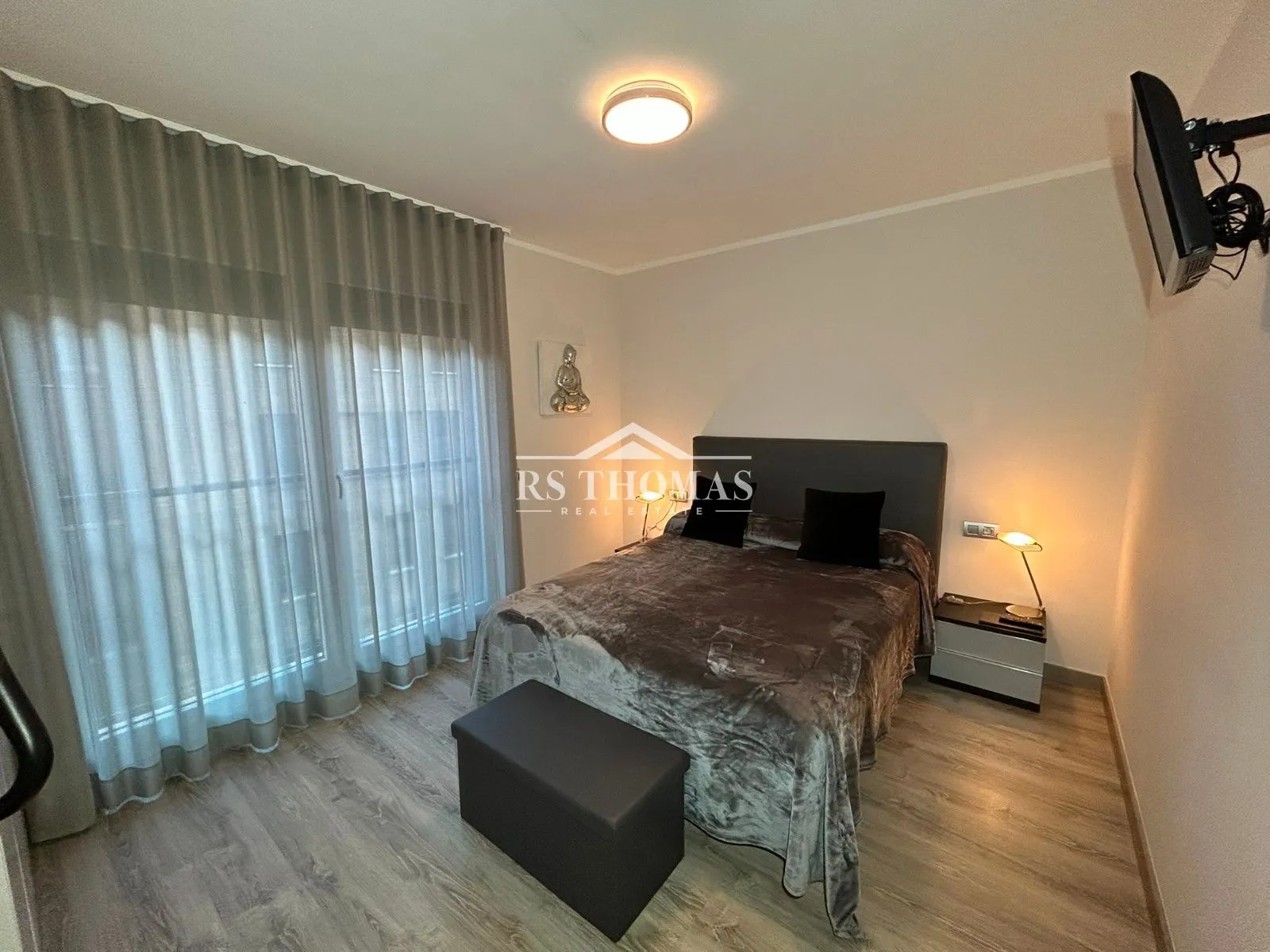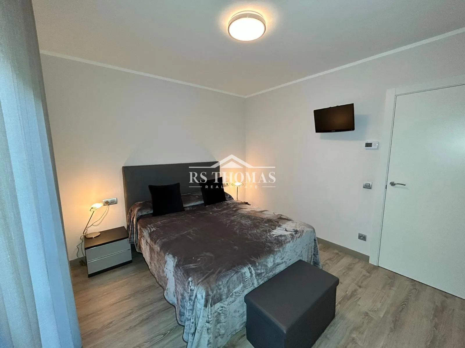 La vivienda dispone de un salón-comedor amplio con cocina abierta, creando un espacio moderno y luminoso con acceso a la terraza, perfecta para disfrutar del aire libre. Cuenta con dos habitaciones dobles, una de ellas en suite con plato de ducha, además de un segundo baño completo con bañera.