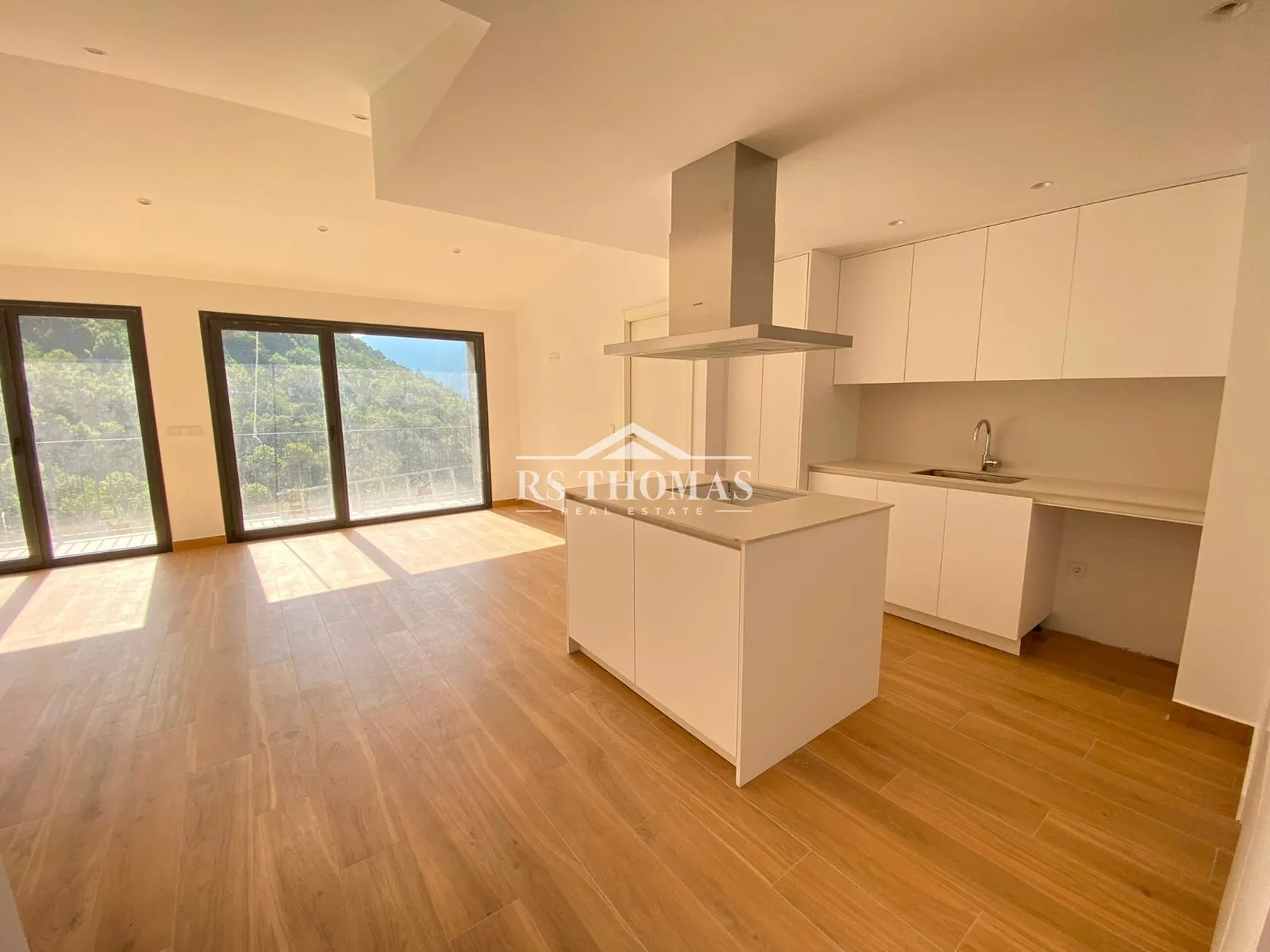 En la zona de día encontramos un amplio y luminoso salón-comedor con cocina abierta semi-equipada y isla central. Desde esta estancia se accede a una magnífica terraza de 14 m², ideal para disfrutar de unas agradables vistas a las montañas y a la ciudad.