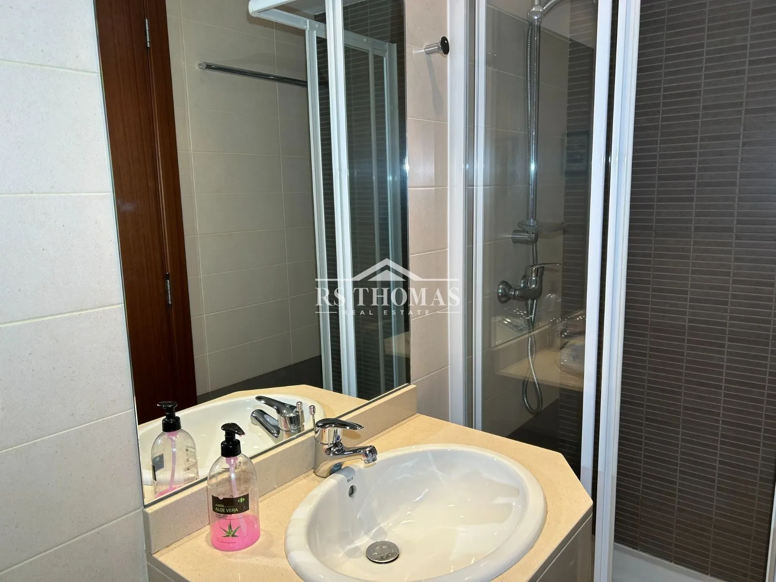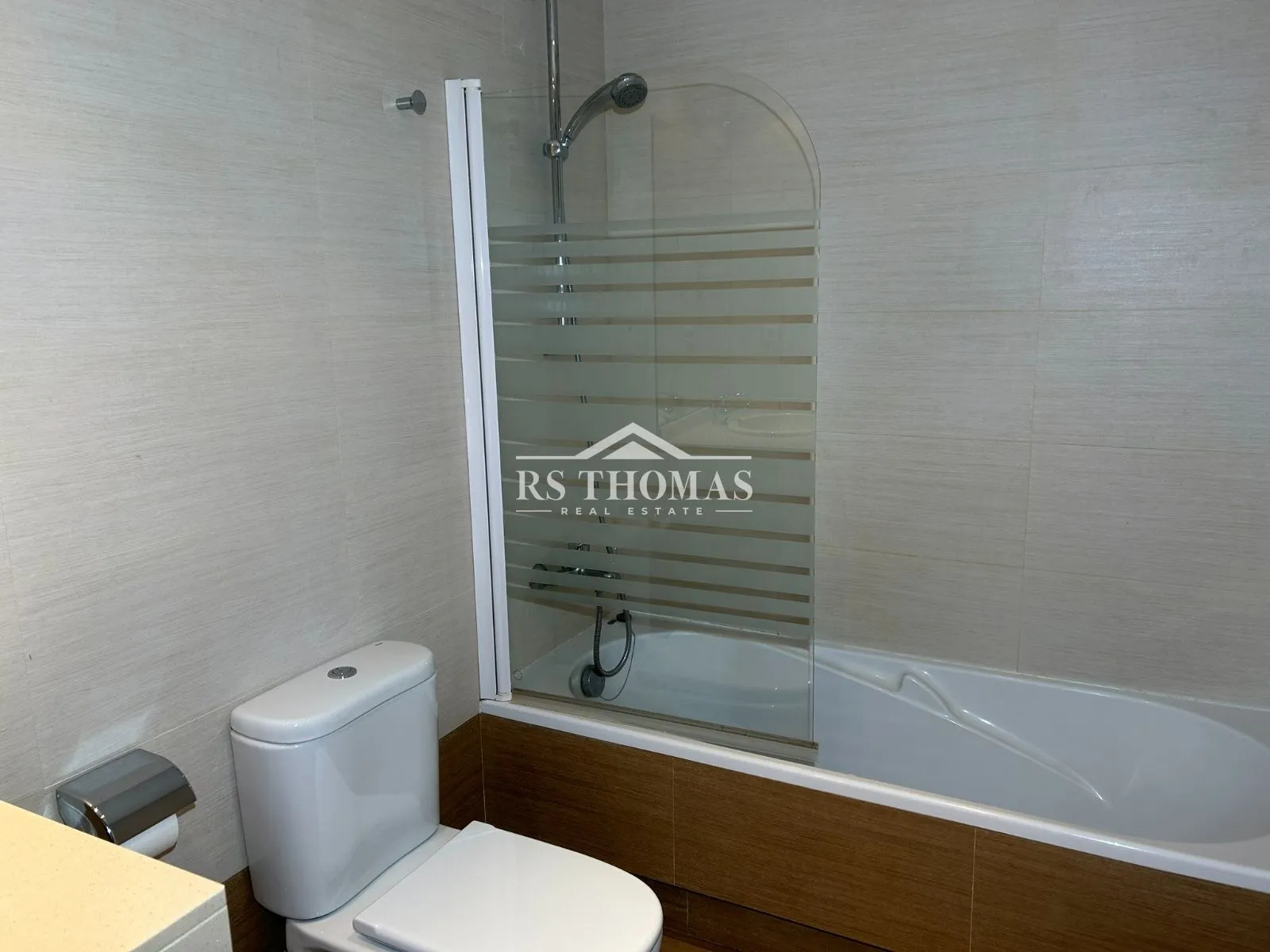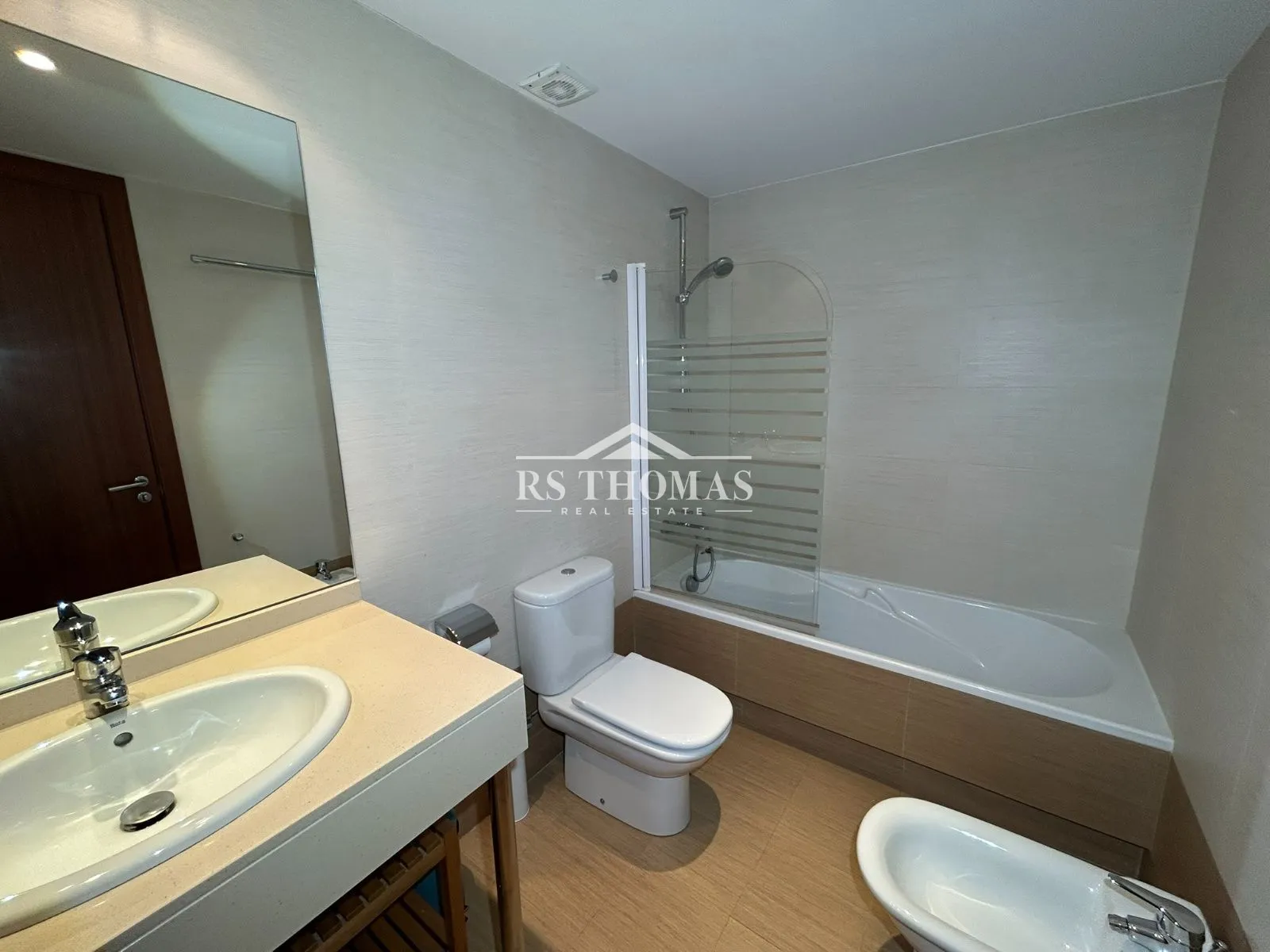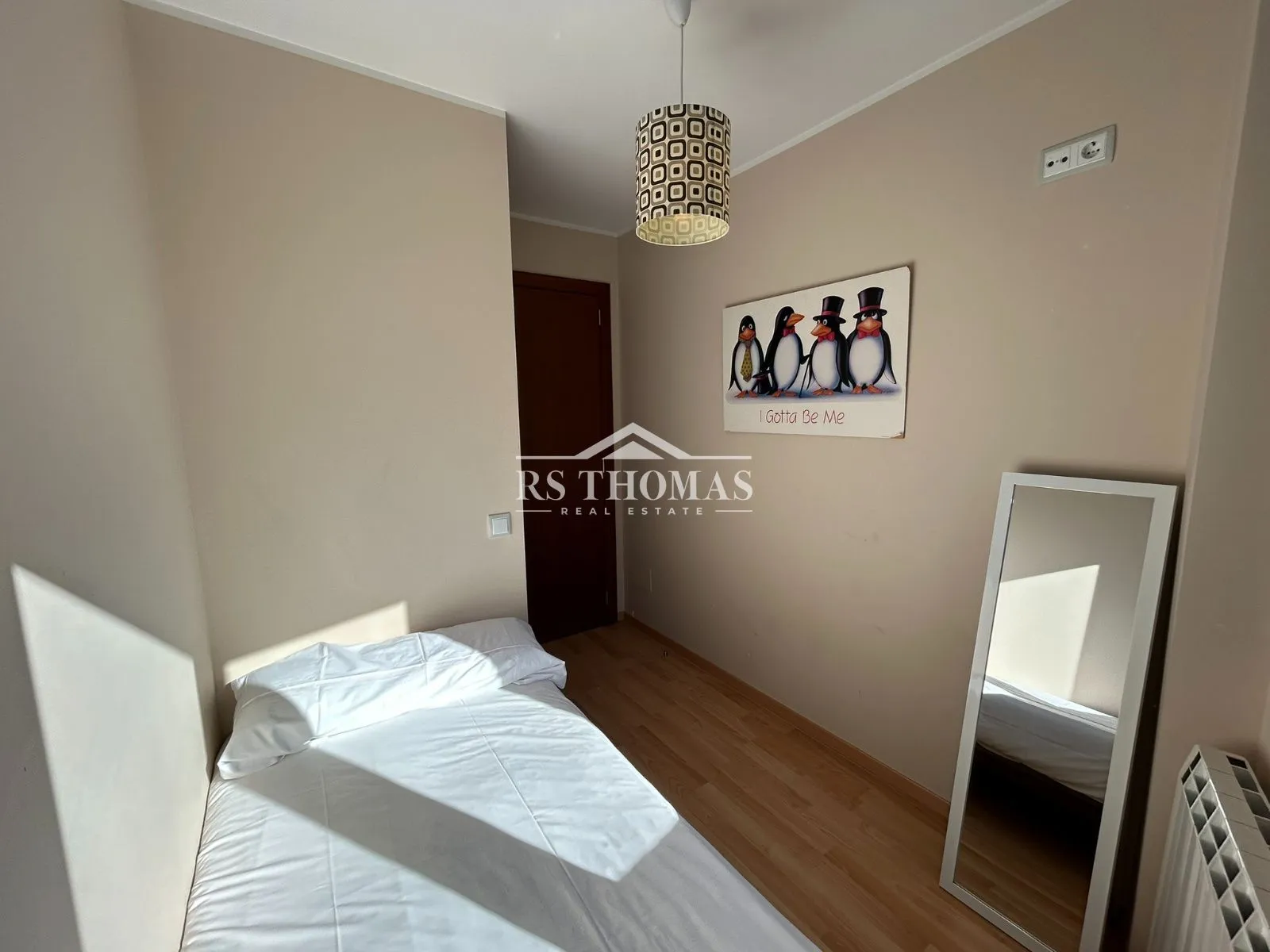 La vivienda dispone de tres dormitorios con armarios empotrados: un dormitorio doble en suite con bañera y dos habitaciones individuales que comparten un baño completo con ducha.