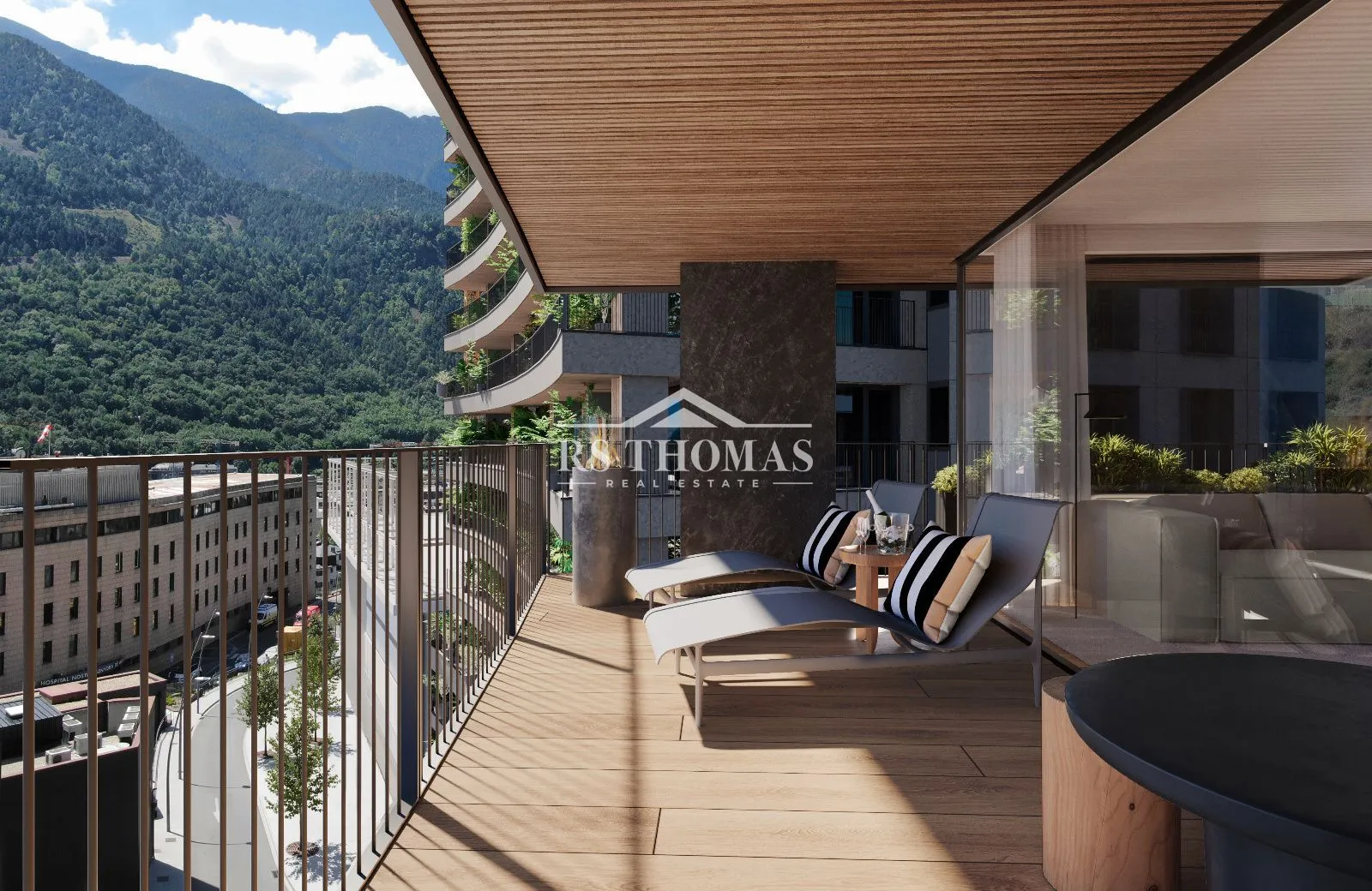 Exclusiva vivienda de obra nueva situada en una moderna promoción residencial en el centro de Escaldes-Engordany, en una ubicación privilegiada próxima al Hospital Nostra Senyora de Meritxell y a pocos minutos del centro neurálgico de la parroquia.