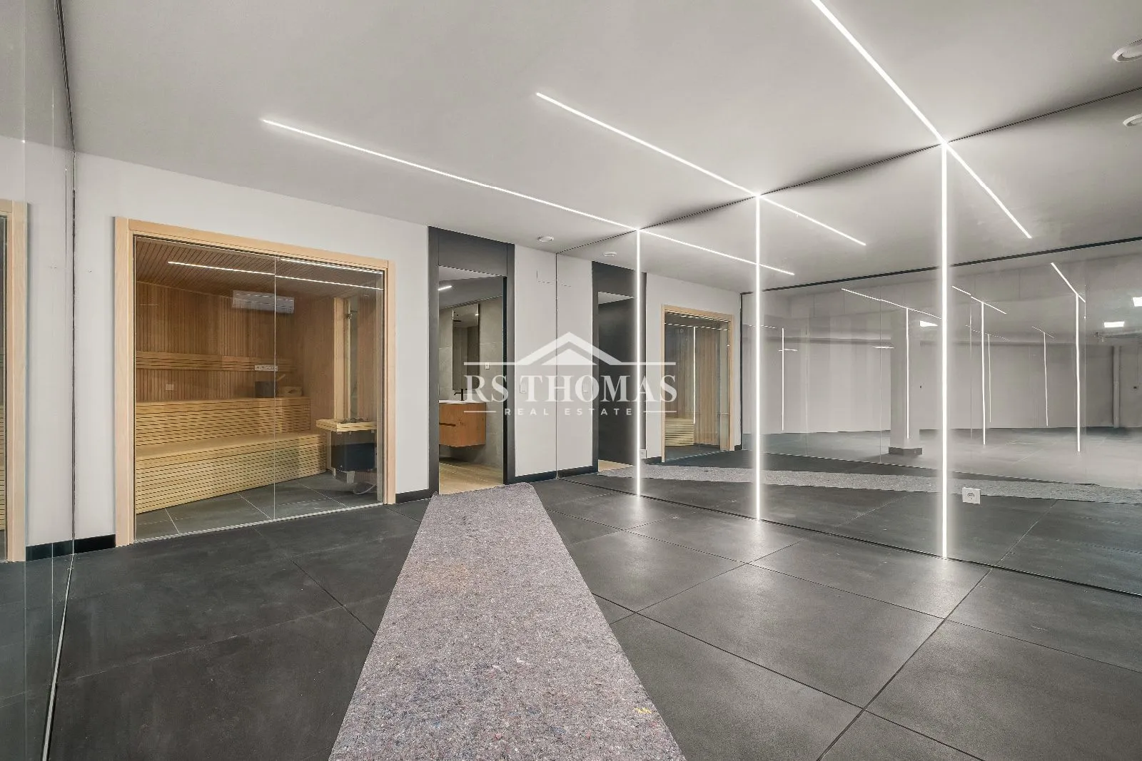 El sótano dispone de un amplio garaje para 4-5 coches, vestíbulo y zona de recibidor, además de incluir una sauna, gimnasio y aseo, ideal para mantenerte en forma y relajarte en tu hogar.