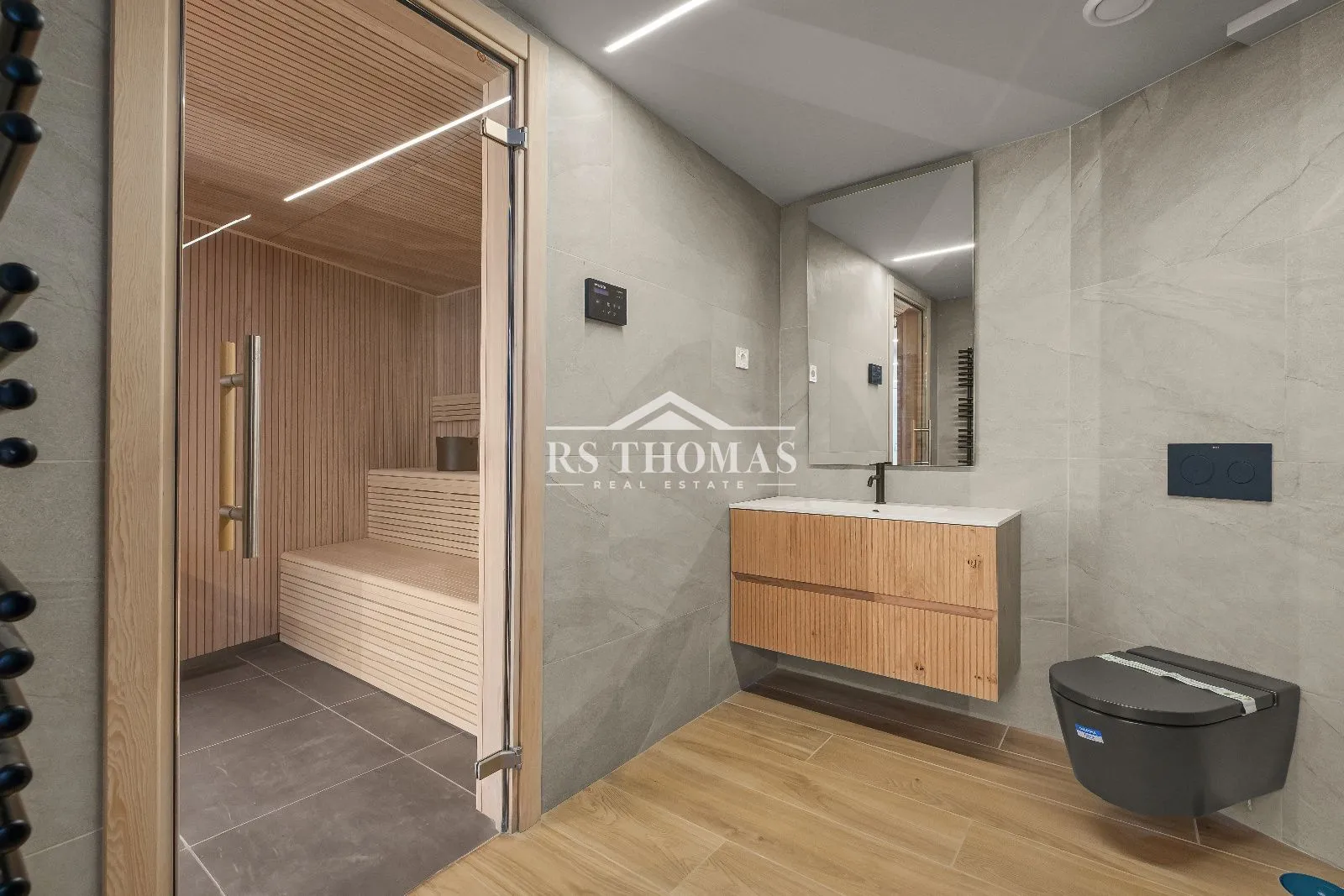 En la primera planta, se ubica la zona de noche más exclusiva, con una master suite que incluye una zona de vestidor muy amplia y un gran baño donde podrás cuidar de ti con comodidad y estilo. Todas las habitaciones son dobles, exteriores y cuentan con armarios empotrados con iluminación interior, garantizando espacio y funcionalidad.