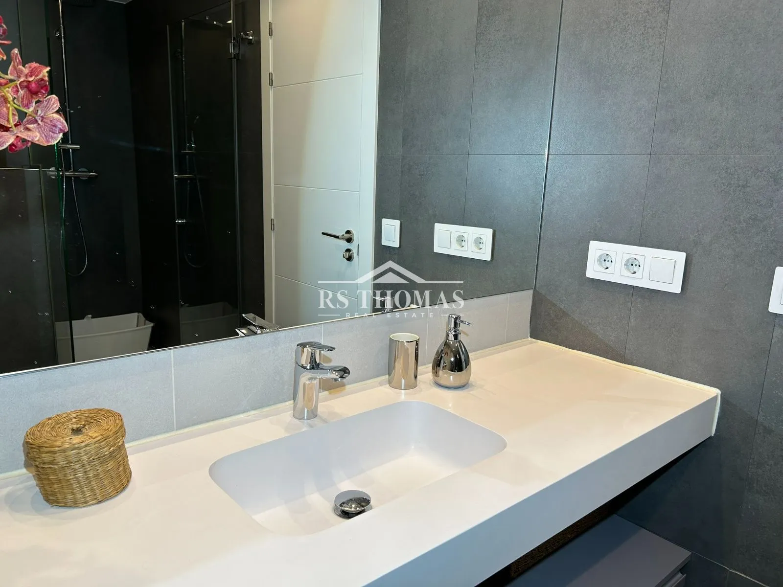 La planta superior alberga un espacioso comedor con acceso a una espectacular terraza cerrada y calefactada, equipada con zona de bar, césped artificial y grandes ventanales que permiten la entrada de abundante luz natural y ofrecen agradables vistas. La cocina abierta, totalmente equipada con electrodomésticos y mobiliario de diseño en tonos gris antracita, incluye además una zona de despensa independiente.