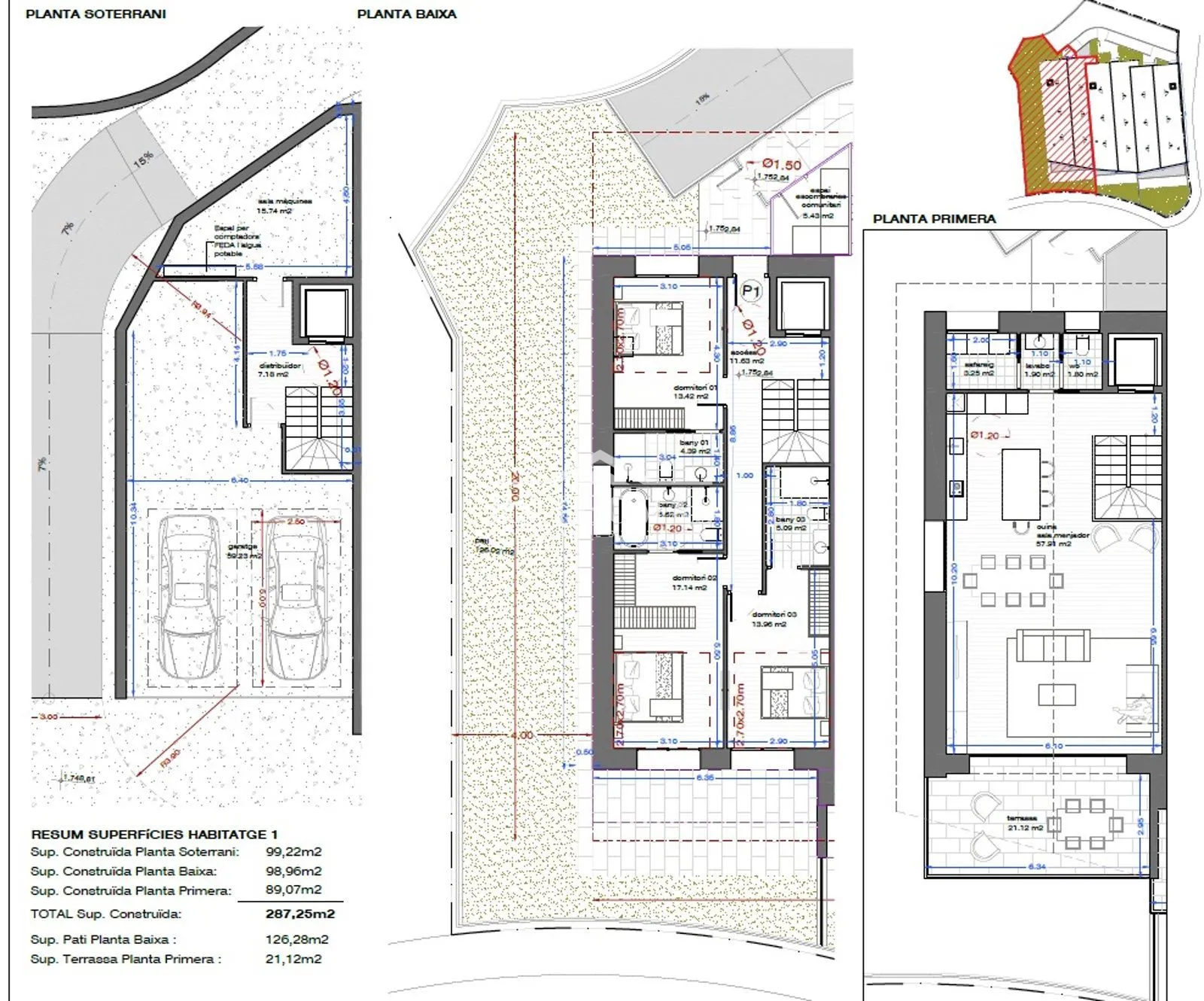En la planta subterránea de la propiedad encontramos un garaje de 60 m² con capacidad para 3 vehículos y la sala técnica de la propiedad. Conectamos esta planta con la principal mediante unas escaleras y un ascensor. En la planta principal encontramos la zona de noche formada por tres dormitorios en suite con vestidor y baño completo, todas las suites tienen ducha y una de ellas también tiene bañera. Todas las estancias son exteriores y luminosas. En esa planta destacamos el maravilloso jardín de 126 m² que rodea la casa y nos ofrece una sensación de amplitud.