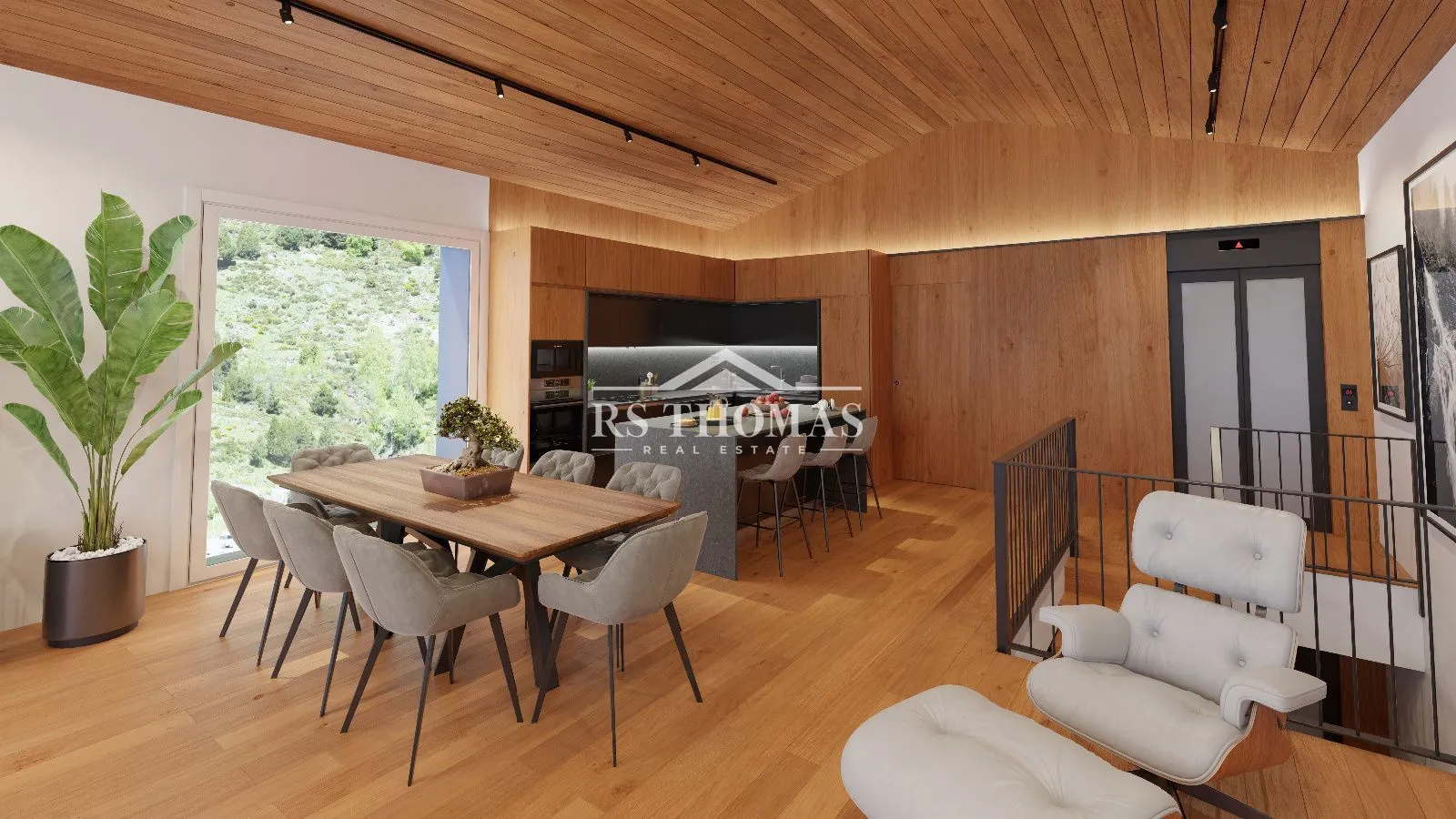 La planta superior de la propiedad está destinada a la zona de día donde tenemos una amplia cocina totalmente equipada con electrodomésticos de alta gama integrada al salón-comedor con una fantástica chimenea. Desde el comedor tenemos acceso a una bonita terraza que nos ofrecerá unas increíbles vistas a las pistas de esquí y a las montañas. Esta zona se complementa con un aseo de cortesía y un espacio para la lavandería.