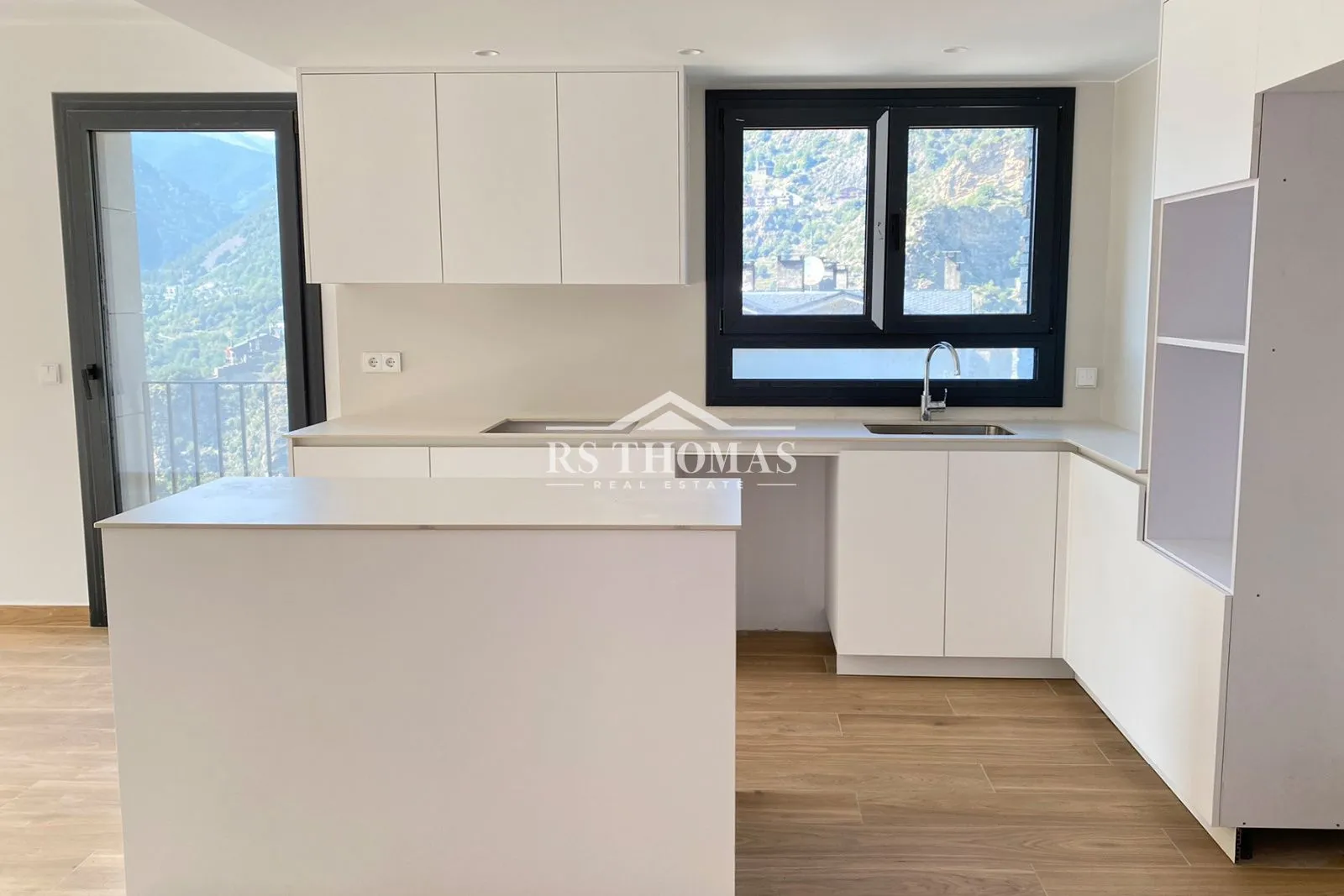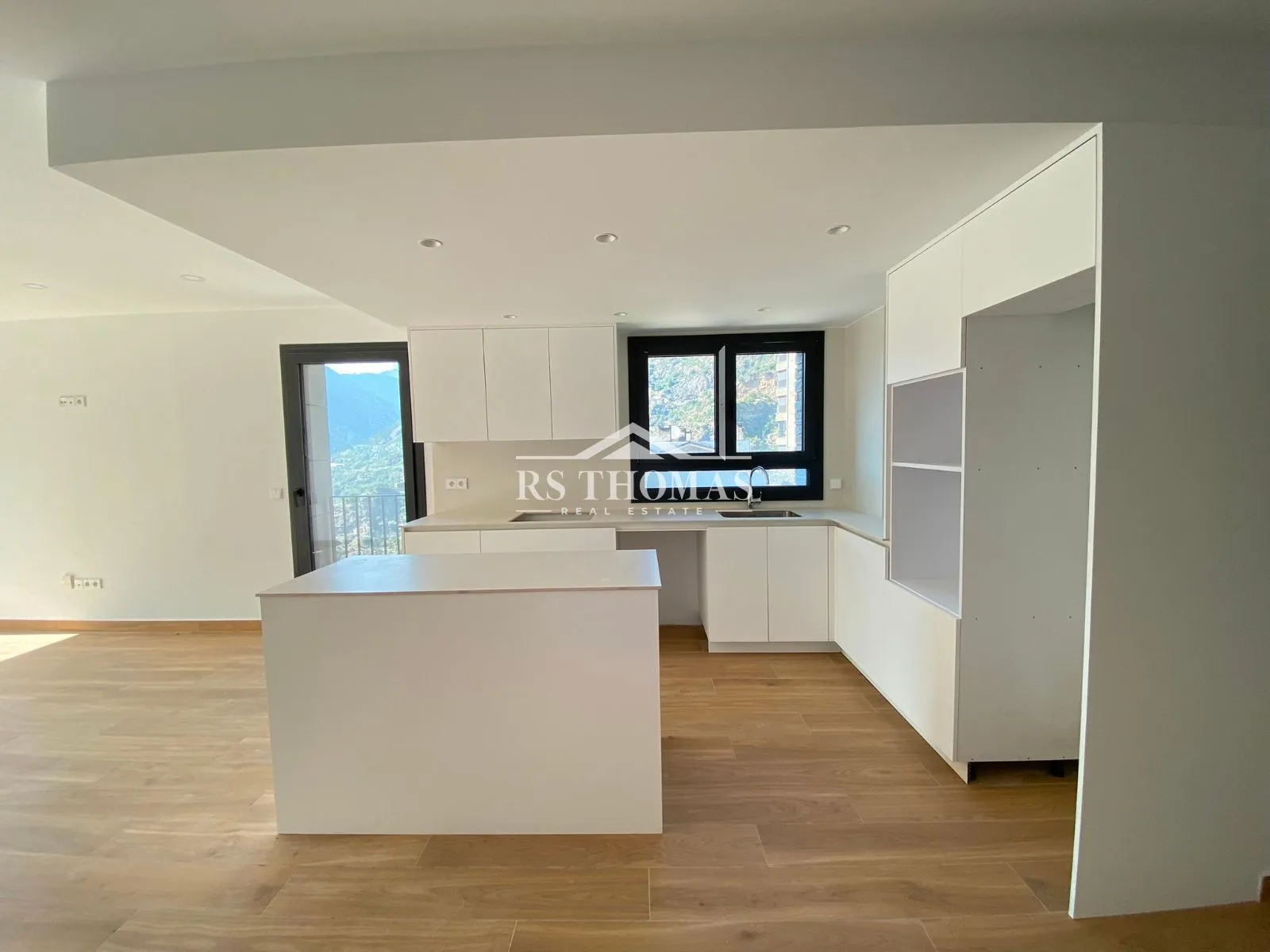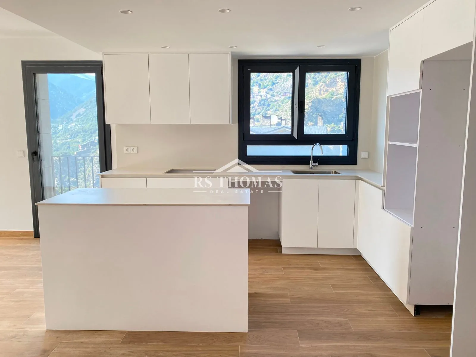 En la zona de día encontramos un amplio y luminoso salón-comedor con una cocina abierta semi-equipada con isla central. Desde esta estancia tenemos acceso a una magnífica terraza de más de 4.13 m² que nos ofrecerá unas vistas fantásticas a las montañas y a la ciudad.