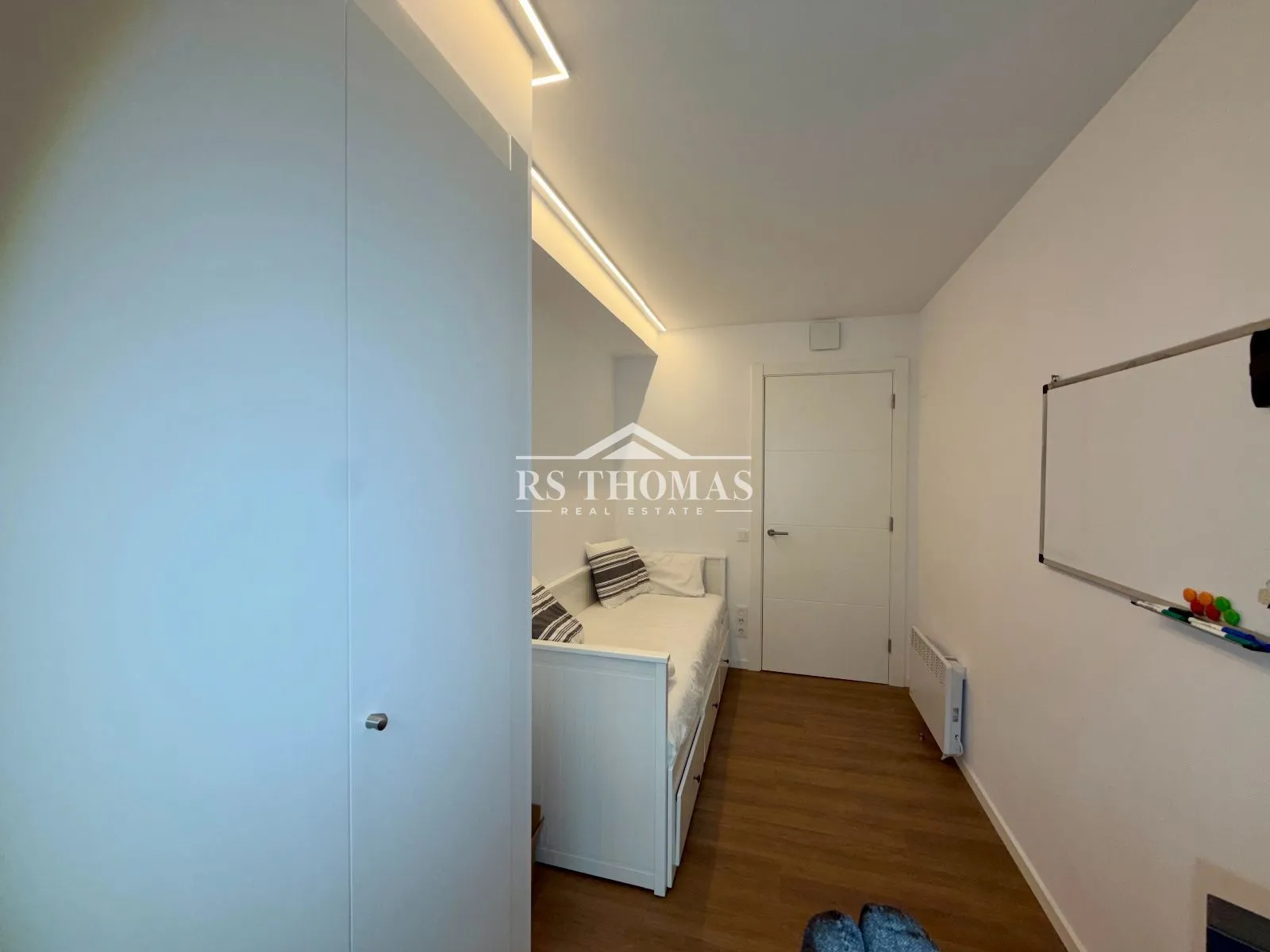 La partie nuit se compose de trois chambres : une chambre double et deux chambres individuelles. Toutes les chambres disposent de placards intégrés et l’appartement comprend deux salles de bain complètes avec douche.