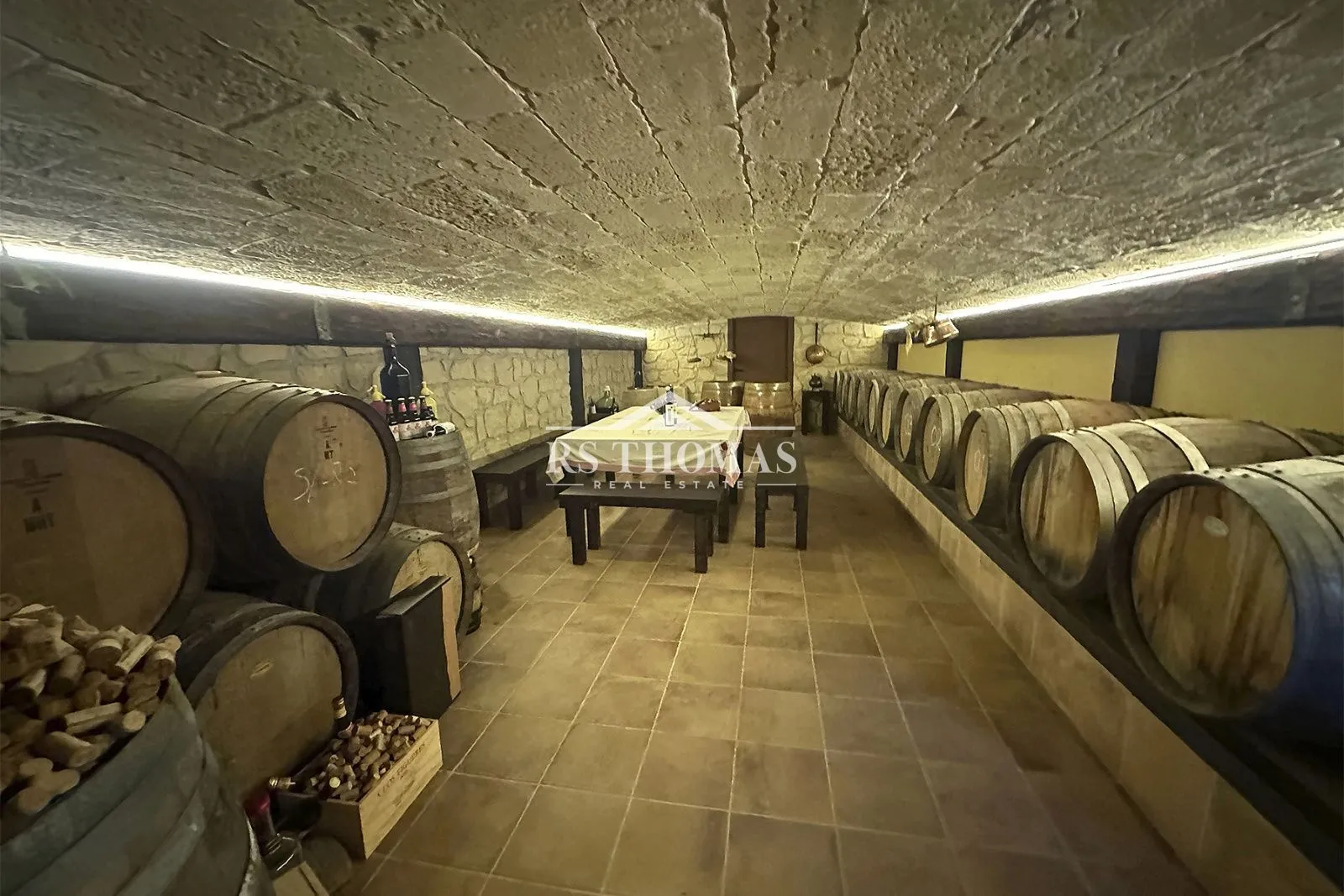 Au -1 étage, nous trouvons une grande cave avec des conditions naturelles optimales pour le maintien du vin et un espace pour le débarras.