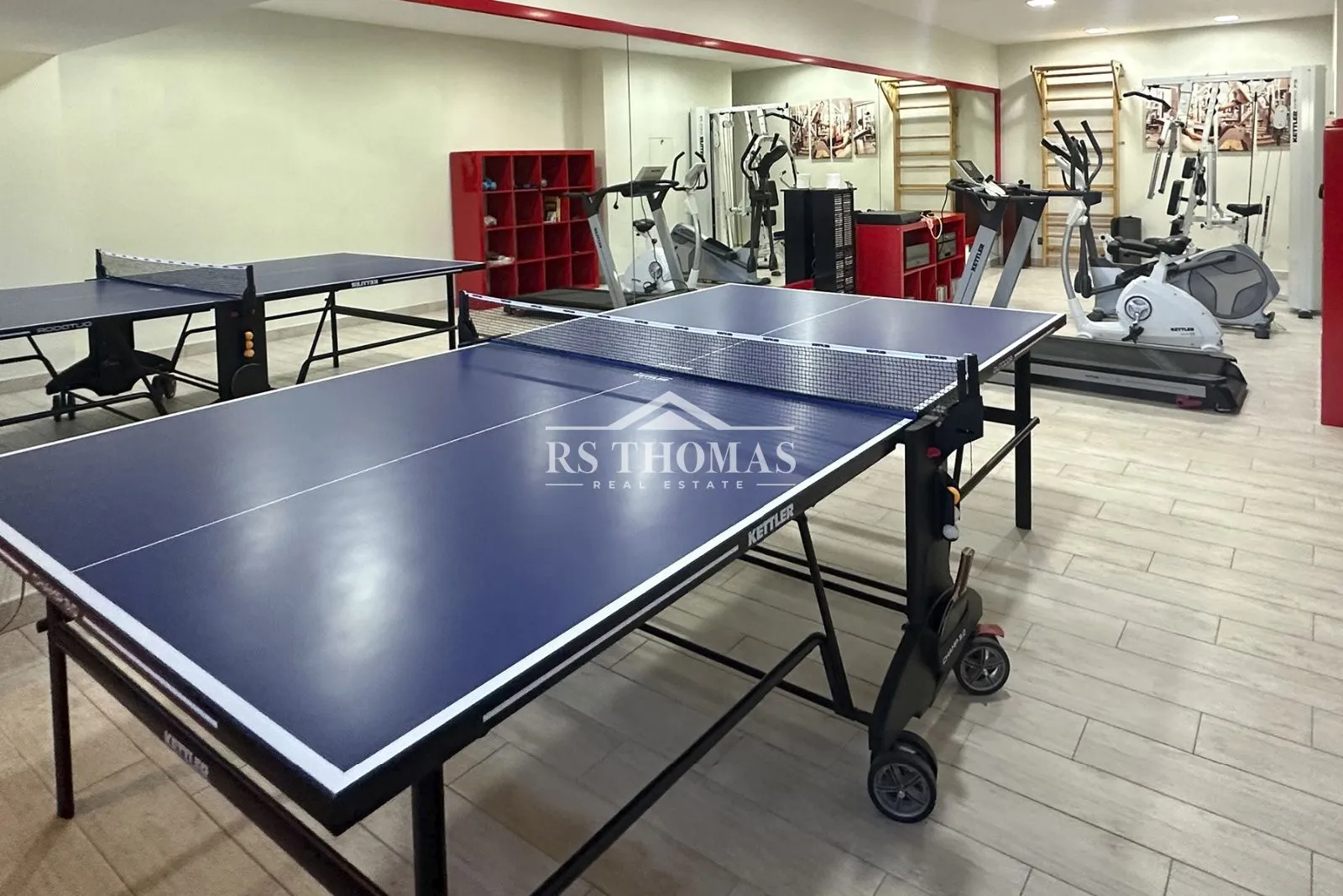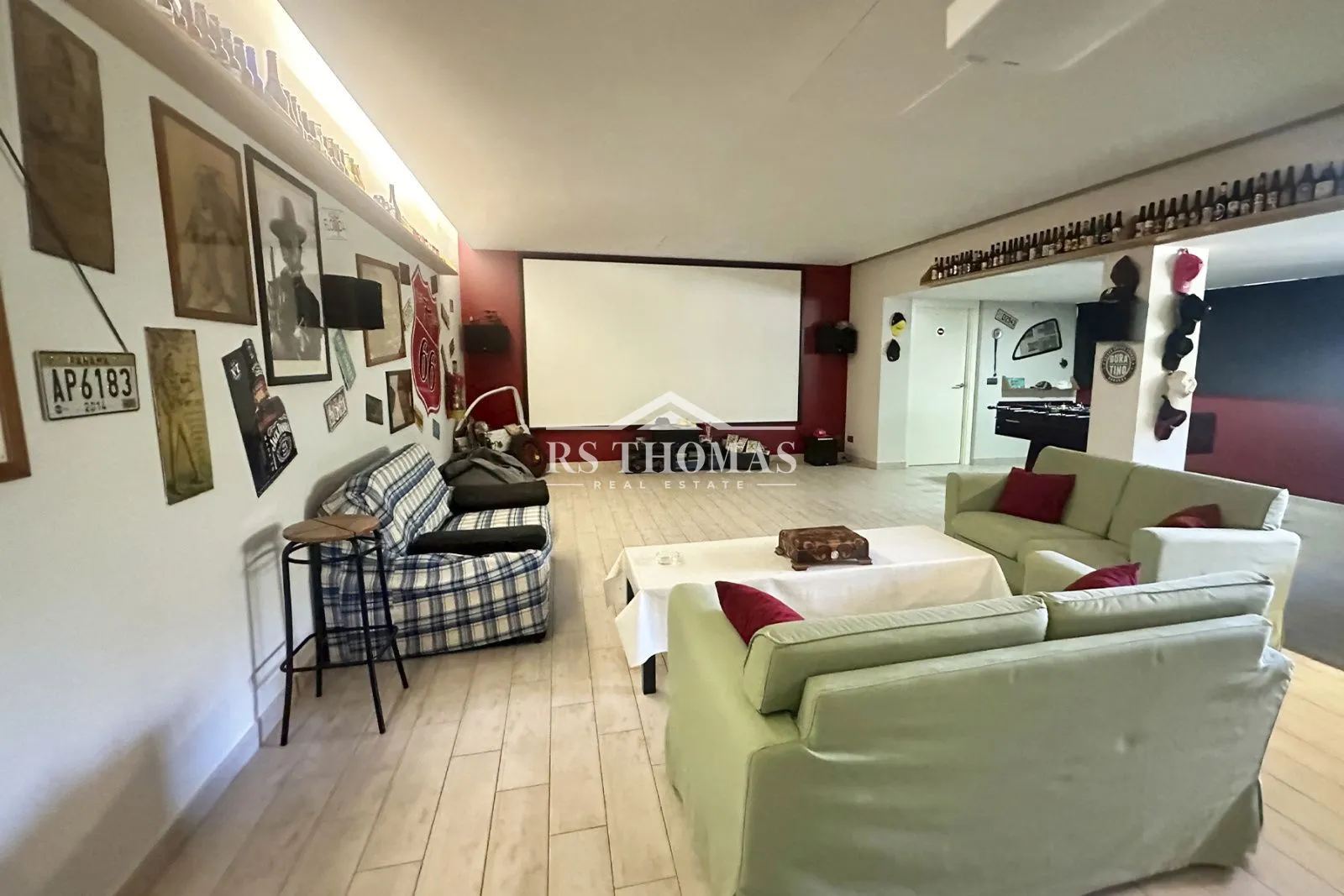 Au rez-de-chaussée, nous avons accès à cette propriété exclusive où l'on voit un grand garage pouvant accueillir plus de 10 véhicules, une salle de sport équipée, une pré-installation pour le sauna, une salle de jeux, une salle polyvalente, des toilettes, un salon. chambre Elle est équipée d'un home cinéma et d'un fabuleux espace bar et d'un accès au jardin extérieur où l'on trouve un jacuzzi. Dans cette zone, nous trouvons également la salle des machines de la maison.