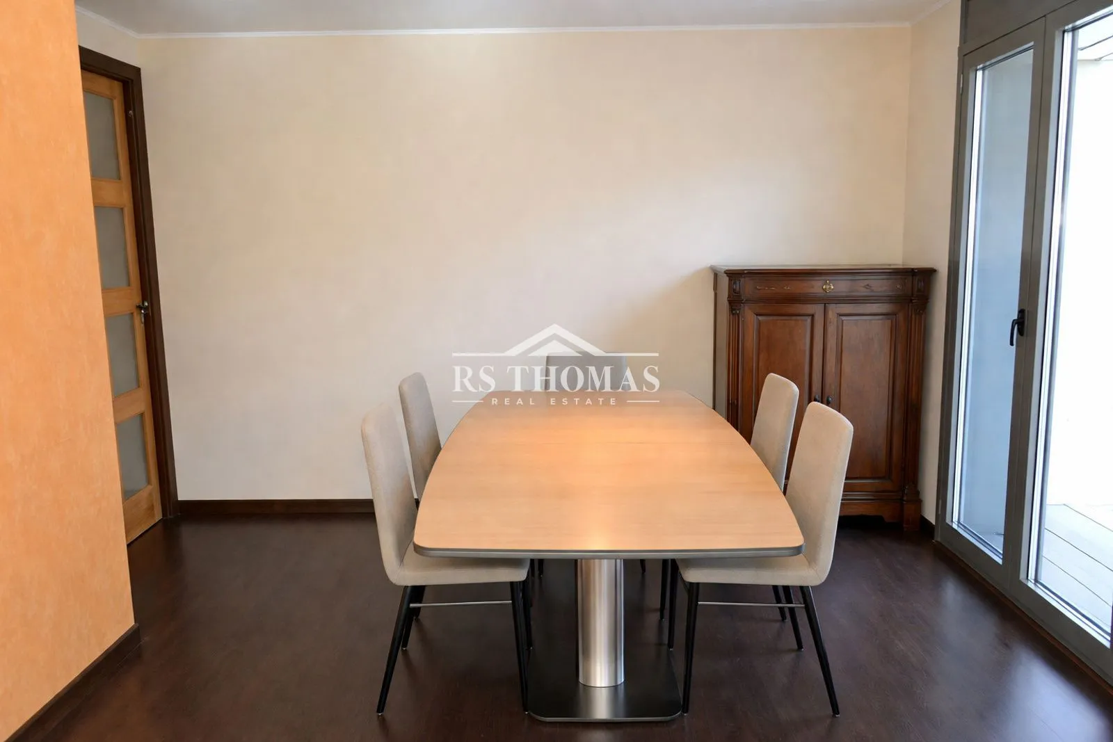The property features a spacious and bright, fully exterior living-dining room with a fireplace and direct access to a pleasant 3 m² terrace. The independent kitchen is fully equipped with a complete range of appliances (washing machine, dryer, refrigerator, oven, and microwave) and also offers direct access to the terrace.