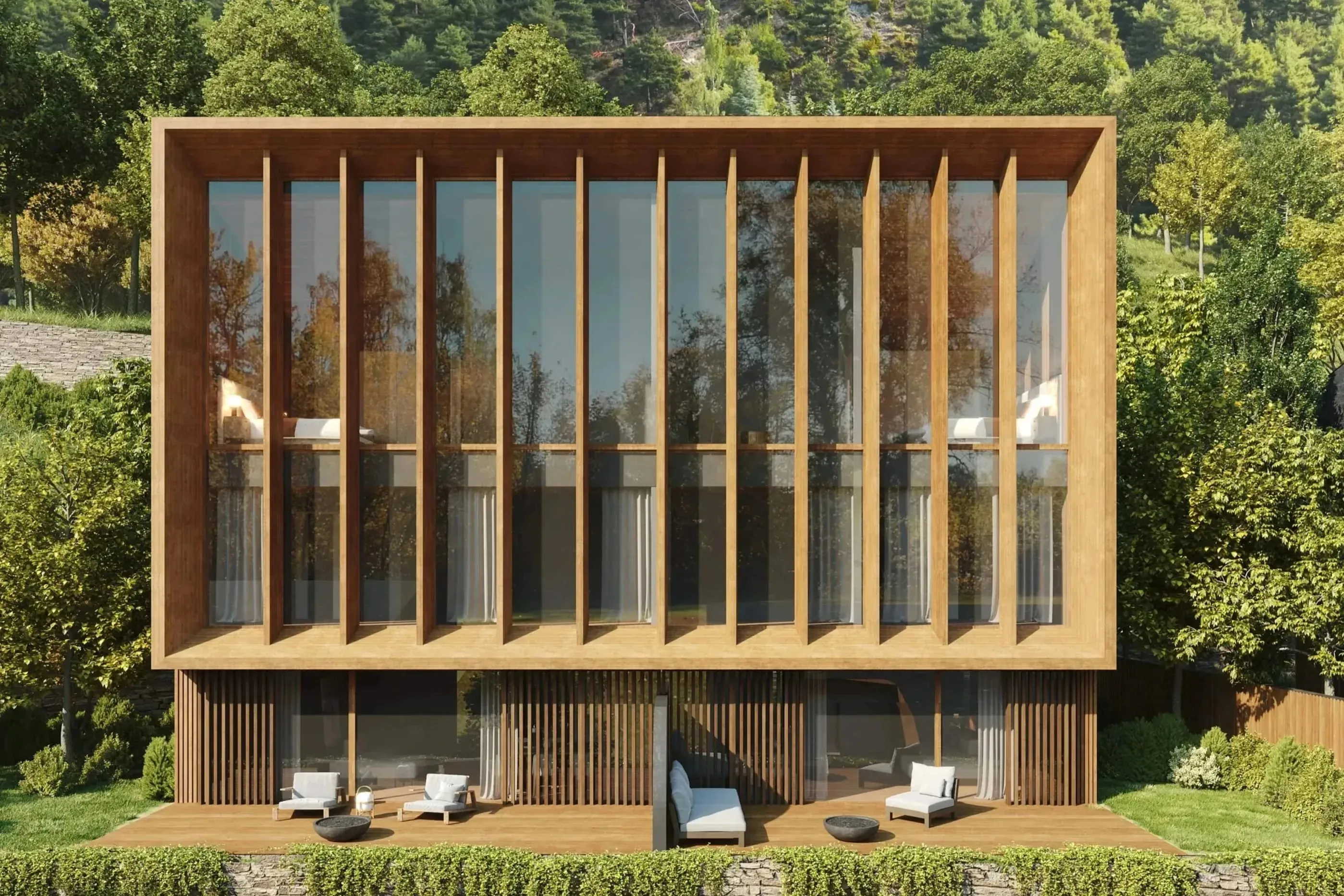 Le projet se compose de 14 chalets mitoyens exclusifs de design, avec des surfaces allant de 263 m² à 653 m². Tous les logements offrent de grands espaces et de larges baies vitrées permettant de profiter des vues panoramiques et d’une excellente luminosité naturelle. De plus, la promotion comprend deux duplex et un penthouse pour ceux qui préfèrent une surface plus réduite.