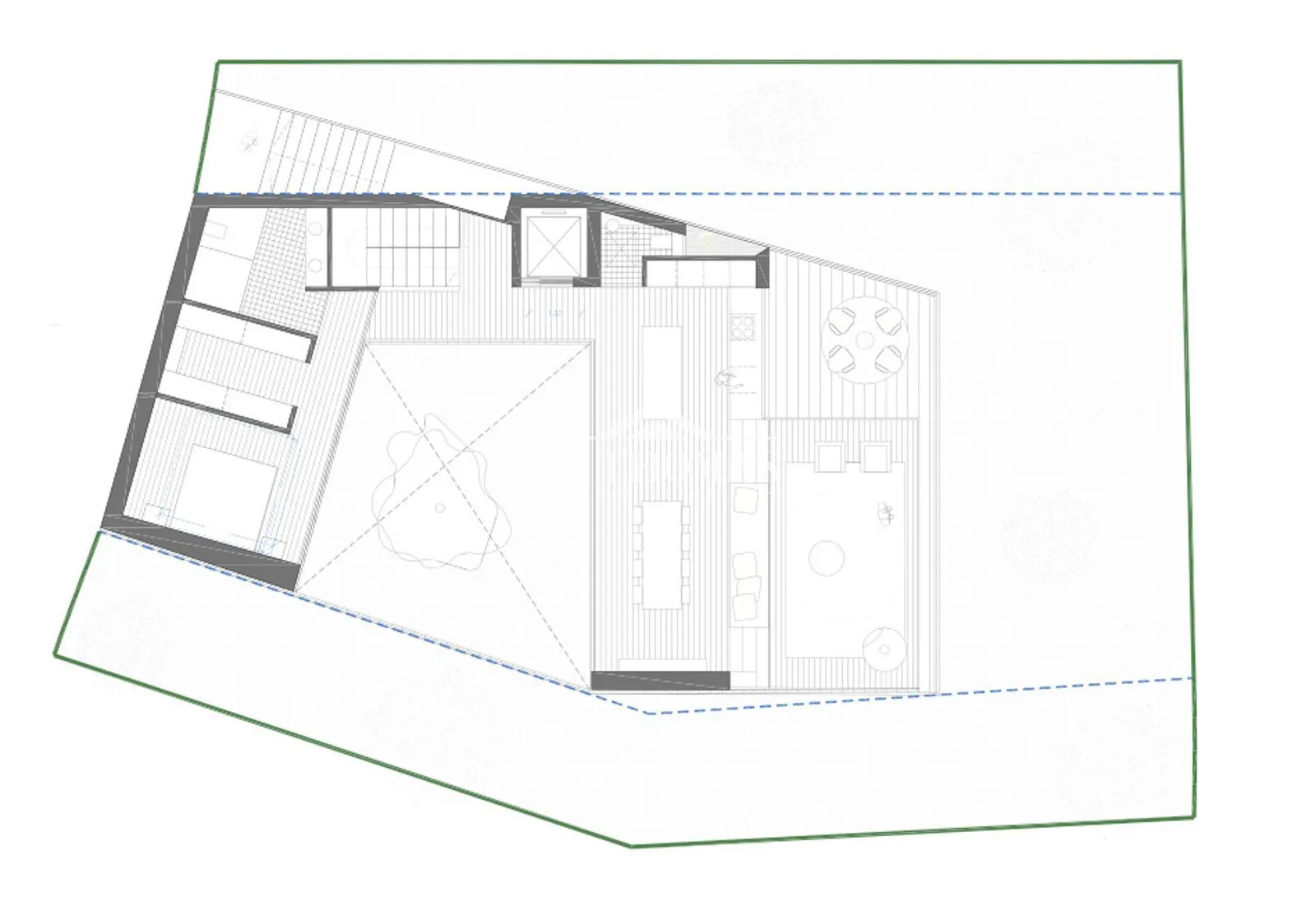 La planta jardí, amb 135 m² construïts, ofereix àmplies zones exteriors: un jardí porxat de 77 m² i un jardí principal de 165 m². Disposa d’una sala polivalent de 25 m² amb possibilitat d’habilitar-hi un espai SPA, així com bany de servei i distribuïdor.