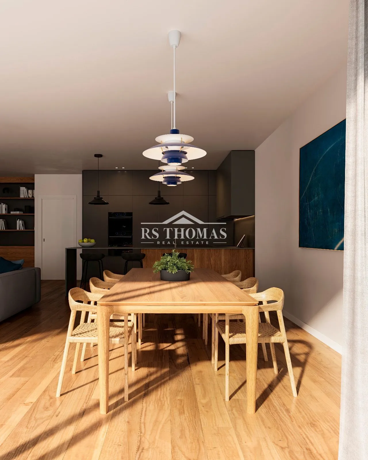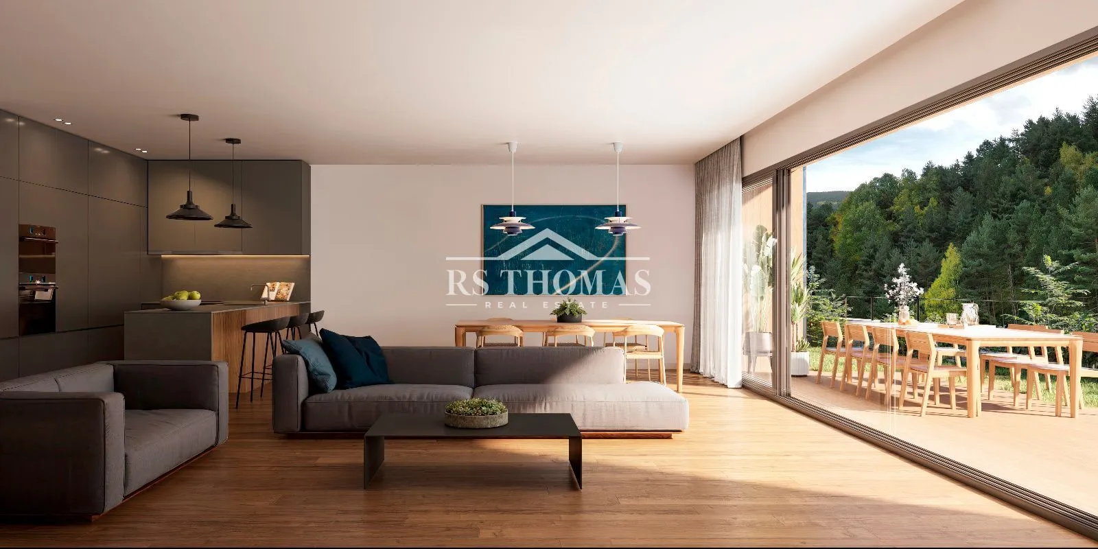 Llegamos a la planta baja donde tenemos un espacioso y luminoso salón-comedor con una cocina abierta integrada con electrodomésticos de alta gama y salida directa a una bonito jardín de 422 m2 con vistas a las montañas de Pal. Esta zona se complementa con un aseo de cortesía y un dormitorio doble.