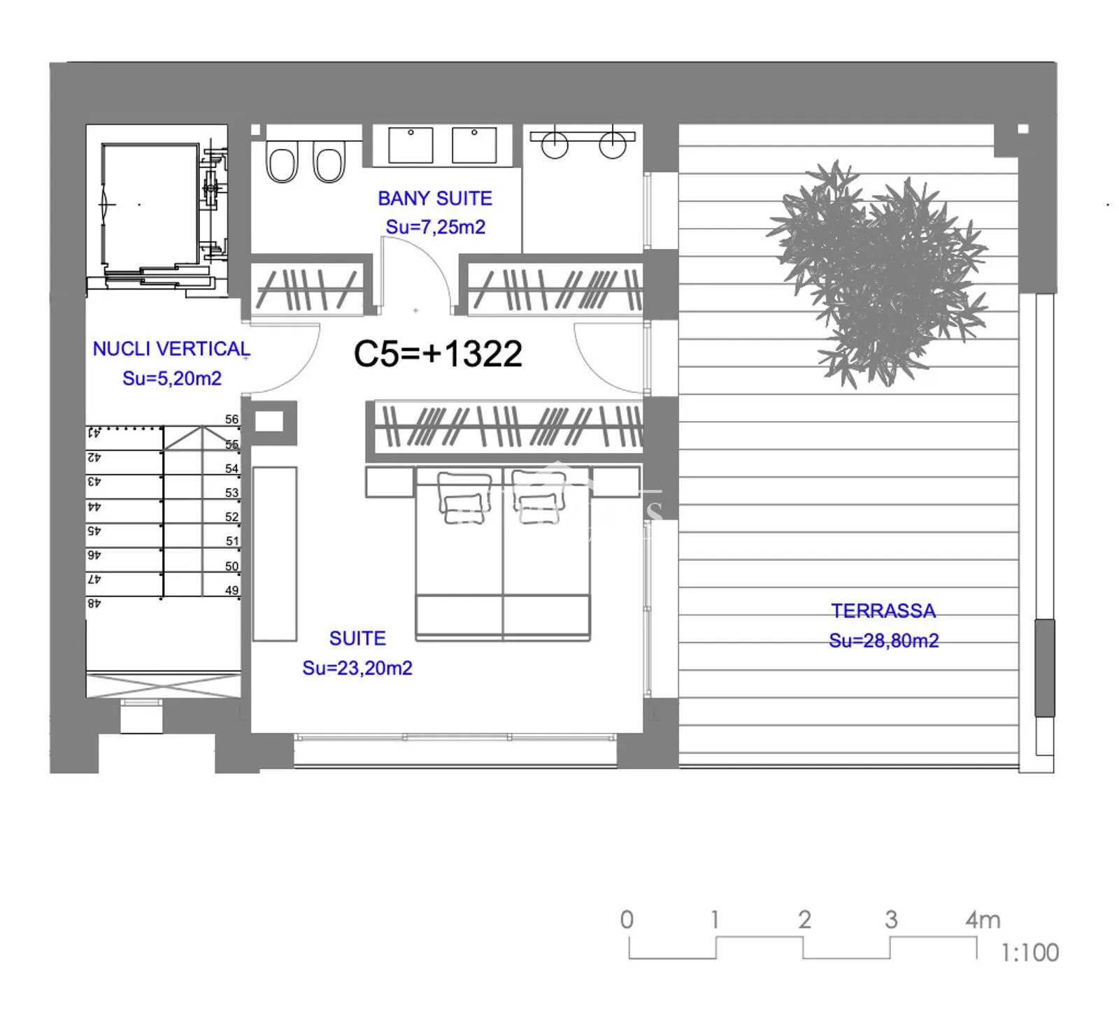 En el interior, el chalet cuenta con cuatro habitaciones y cinco baños (uno de ellos aseo), con una distribución flexible que se adapta a las necesidades de cada propietario. Los materiales naturales, la luminosidad y la conexión con la vegetación convierten este chalet en un auténtico refugio de bienestar, donde el lujo y la sostenibilidad conviven en perfecta armonía.
