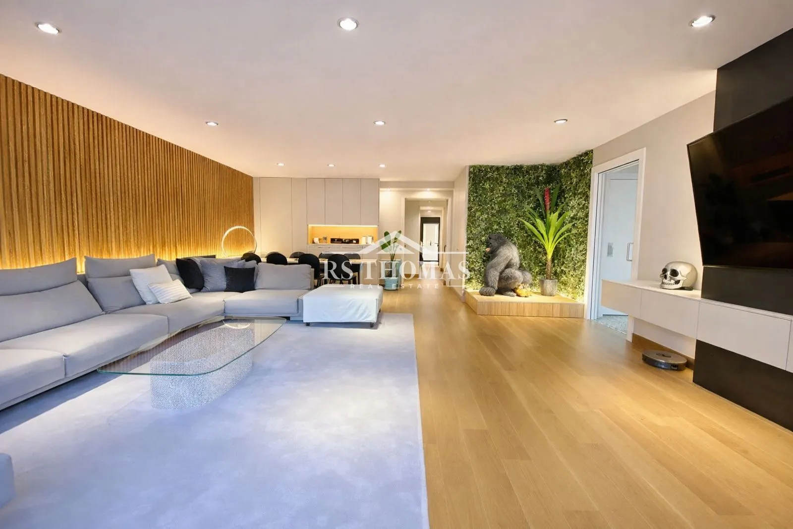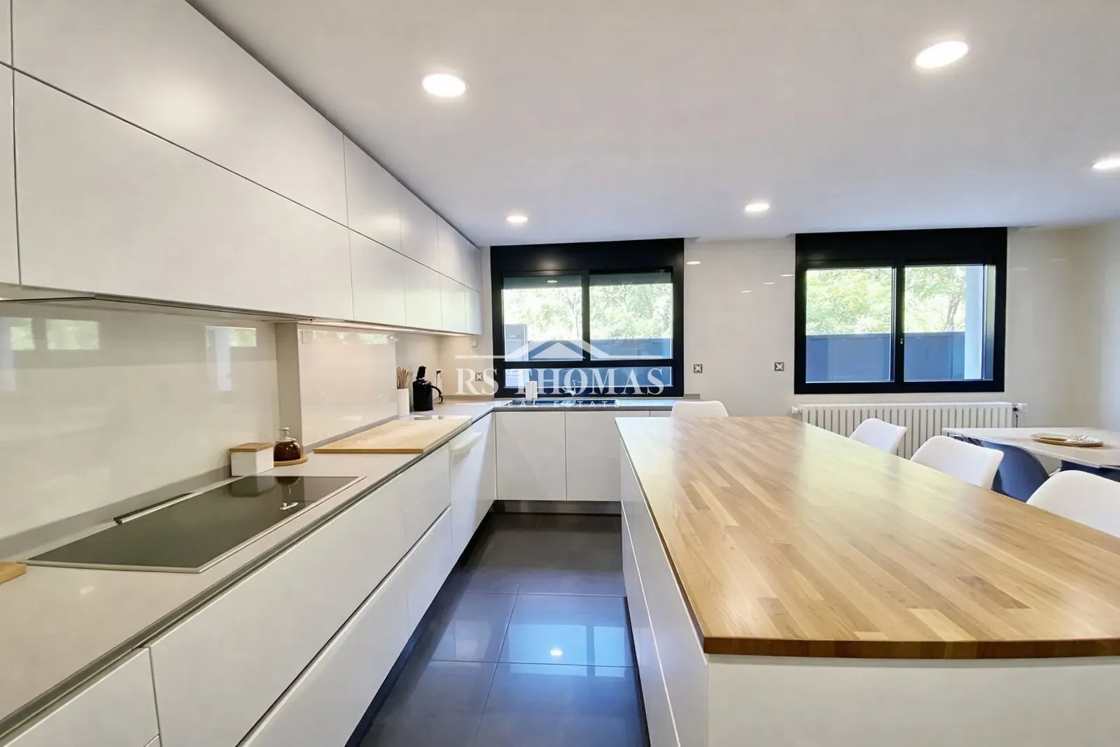 El espacioso salón-comedor de aproximadamente 50 m² ofrece una gran entrada de luz natural y agradables vistas despejadas. La cocina es independiente, muy amplia y totalmente equipada, ideal para el día a día y para disfrutar de momentos en familia.