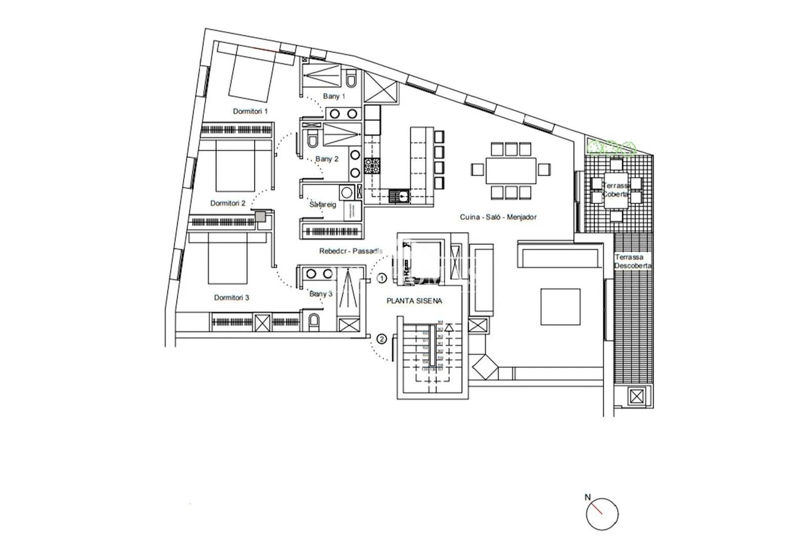 Además, el piso cuenta con un sistema de producción de energía con aerotermia con unidad termodinámica exterior a cubierta, un sistema de suelo radiante y una instalación de climatización frío-calor.