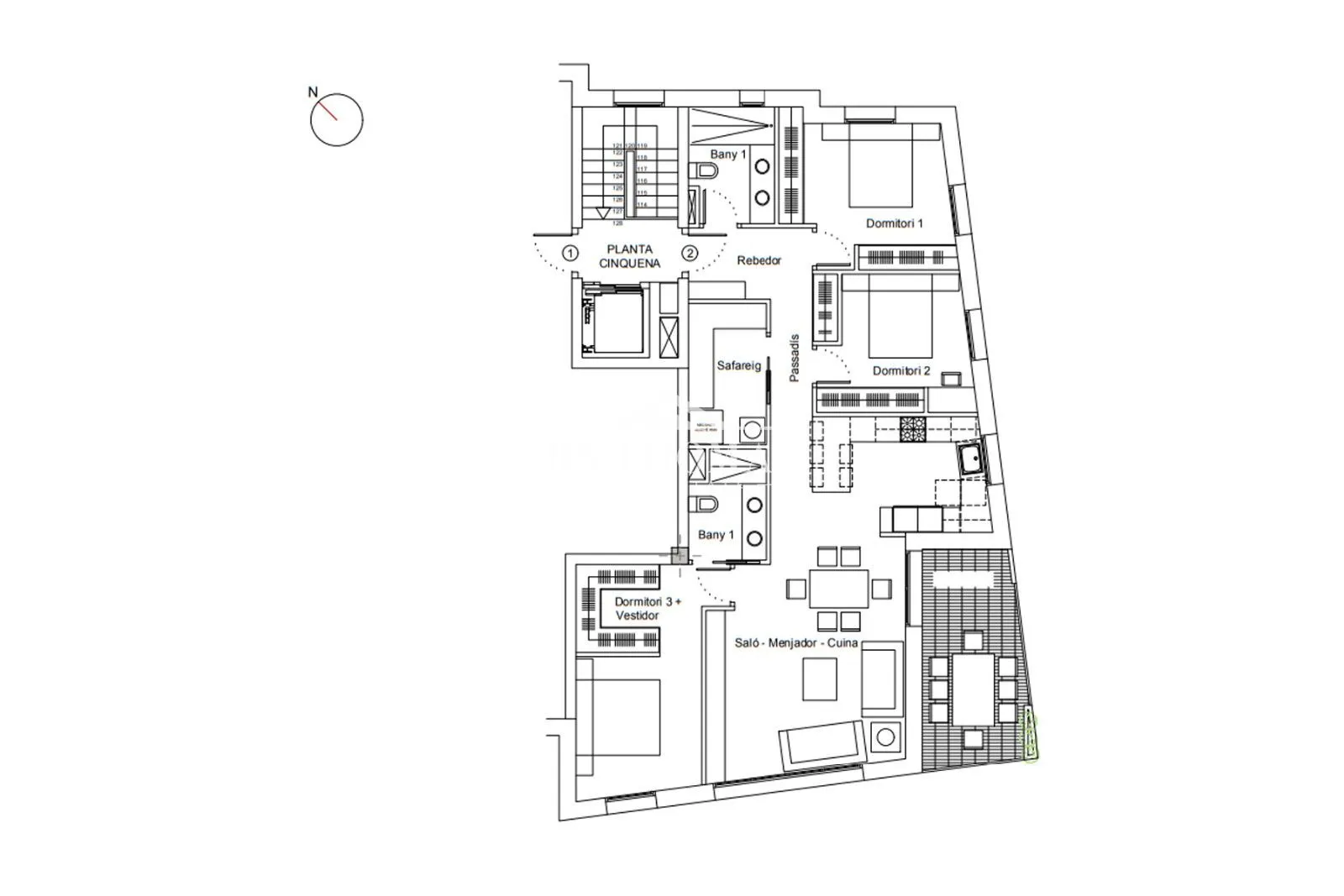 Este magnífico piso ha sido diseñado pensando en el máximo confort y en cada detalle. Los acabados y materiales son de alta calidad, como la estructura del edificio que se basa en pilares y losas de hormigón armado con aislamiento térmico según la normativa. Los vidrios son adaptados a las exigencias energéticas con cámara de aire y las puertas de acceso a los hogares son blindadas, mientras que las puertas interiores cuentan con acabados macizos de roble lacado de fábrica.