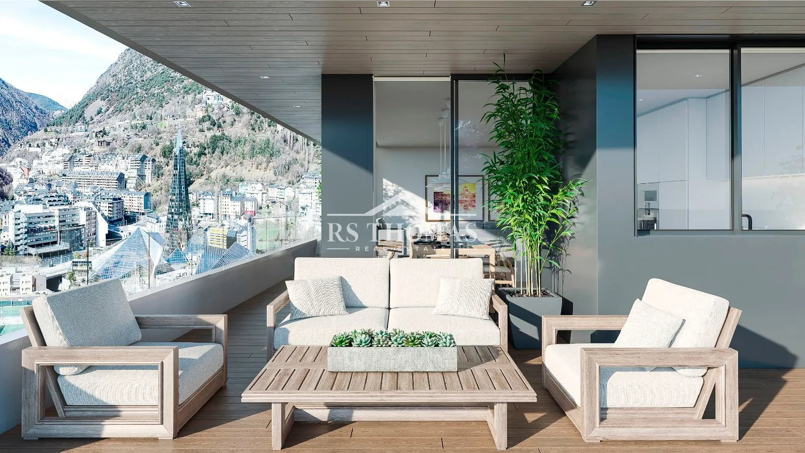 En la zona de día encontramos un amplio y luminoso salón comedor con vistas exteriores y salida a una terraza cubierta de 12,72 m². Junto a esta estancia, encontramos una cocina abierta totalmente equipada con electrodomésticos de alta calidad, como la campana extractora, la placa de inducción y el horno eléctrico de la casa Bosch, el fregadero de acero inoxidable de la marca Roca y las griferías Grohe. Esta zona se complementa con un baño independiente completo y una sala destinada a la lavandería.