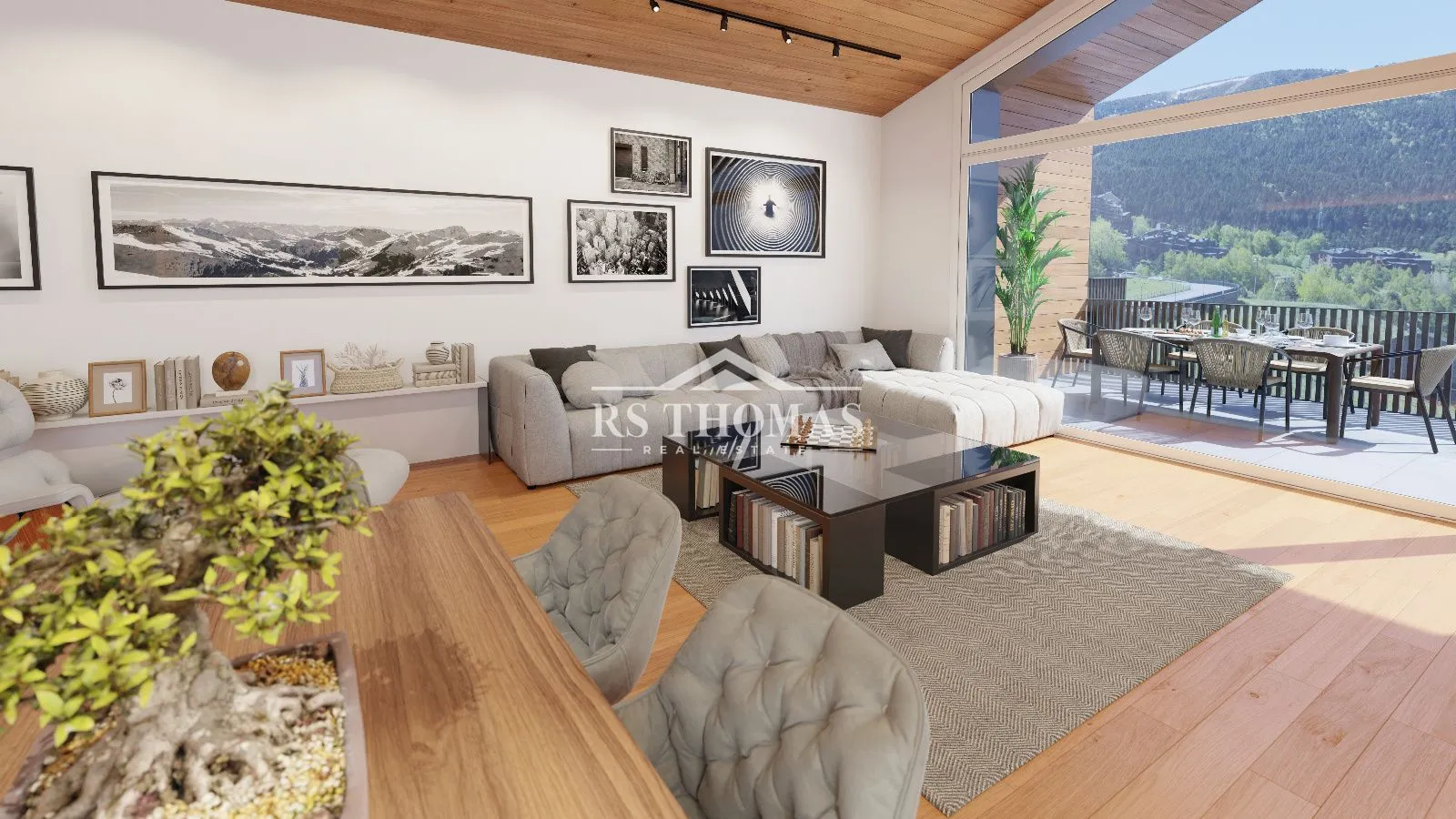 La planta superior de la propiedad está destinada a la zona de día donde tenemos una amplia cocina totalmente equipada con electrodomésticos de alta gama integrada al salón-comedor con una fantástica chimenea. Desde el comedor tenemos acceso a una bonita terraza que nos ofrecerá unas increíbles vistas a las pistas de esquí y a las montañas. Esta zona se complementa con un aseo de cortesía y un espacio para la lavandería.