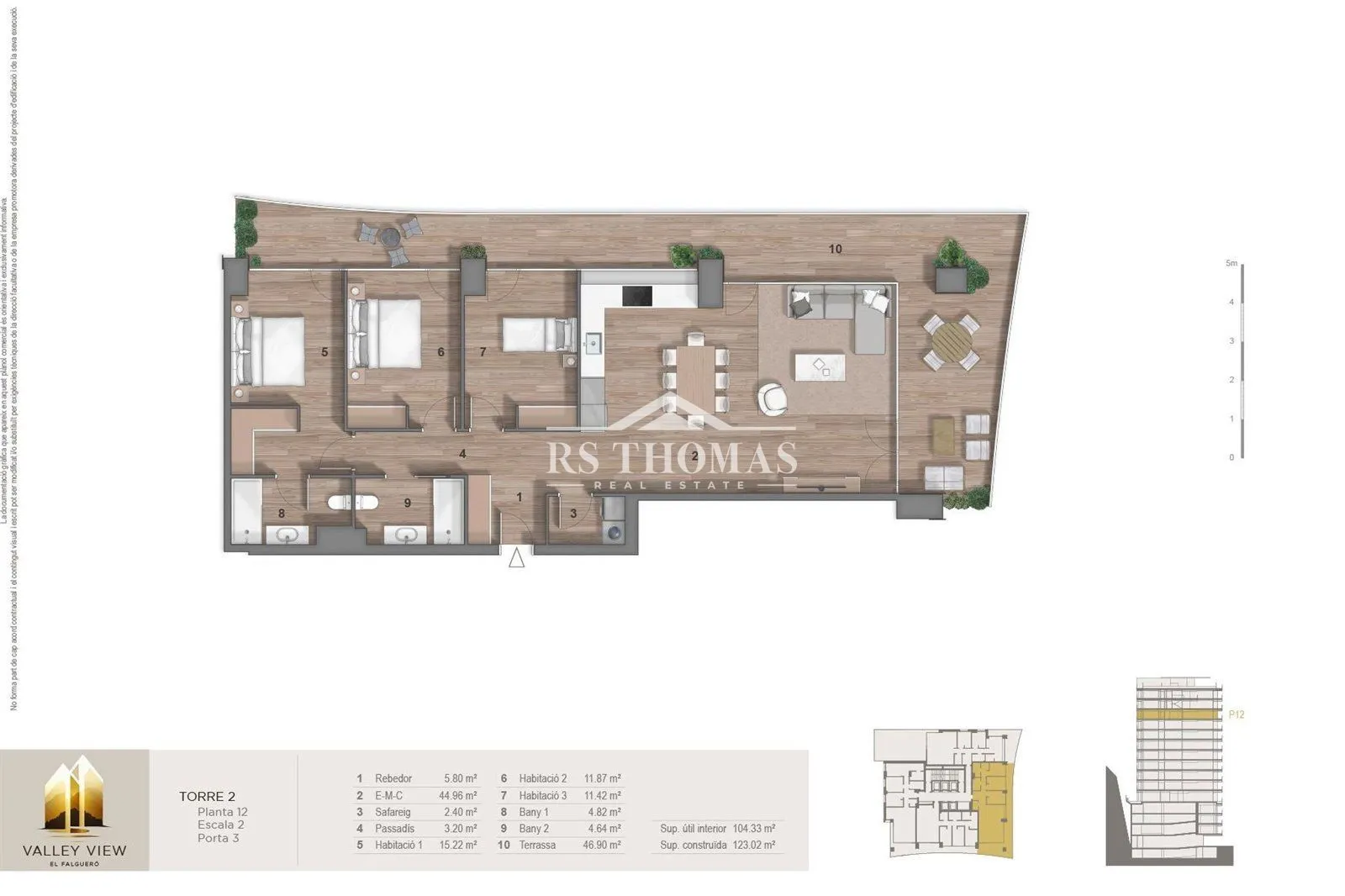 Exclusivo piso de obra nueva para comprar en Escaldes-Engordany, ubicado en un emplazamiento inigualable frente al Hospital Nuestra Senyora de Meritxell a pocos minutos a pie del centro neurálgico de la parroquia...Esta propiedad dispone de una superficie construida de 123.02 m² y una terraza de 46.90 m² con acceso directo desde el comedor y cualquiera de las estancias de noche. ..La propiedad se distribuye de la siguiente manera:..En la zona de día encontramos un amplio recibidor que nos conecta con un espectacular salón-comedor con acceso directo a la terraza y una cocina abierta integrada con electrodomésticos de alta gama. En esta zona encontramos una sala para la lavandería. ..La zona de noche está compuesta por tres dormitorios dobles, de los cuales uno de ellos en suite con vestidor y un baño completo con ducha. Todos los dormitorios tienen armarios empotrados y son exteriores. Esta zona se complementa con otro baño completo con ducha...Esta magnífica propiedad está pensada hasta el más mínimo detalle, con acabados de alta calidad como el suelo radiante en cada una de las estancias, sistema de domótica en toda la propiedad, electrodomésticos de la marca Siemens o similar, entre otros...Destacamos de esta promoción las maravillosas zonas comunes para los propietarios, piscina cubierta climatizada con zona de relax y vistas a la zona ajardinada exterior, un gimnasio totalmente equipado, vestidores, 2 salas polivalentes que pueden usarse de oficinas estilo \"co-working\" o como salas de lectura y un camino exclusivo para vecinos al Camino de El Falgueró y al Rec del Solà...Para su total comodidad esta propiedad dispone la posibilidad de adquirir por un precio aparte plazas de parking y trasteros en el mismo edificio. .